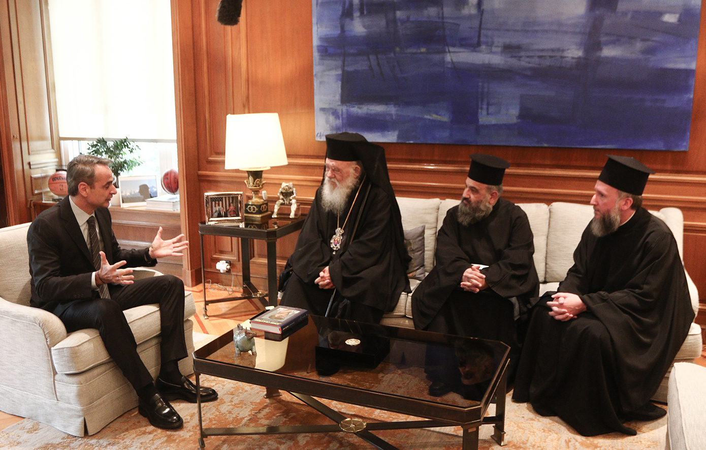 Αναφορά στην απώλεια του αρχιεπισκόπου Αλβανίας έκαναν, κατά της διάρκεια της σύντομης συνομιλία τους μπροστά στις κάμερες, ο πρωθυπουργός, Κυριάκος Μητσοτάκης και ο αρχιεπίσκοπος Αθηνών και πάσης Ελλάδος, Ιερώνυμος, στη συνάντησή τους στο Μέγαρο Μαξίμου.