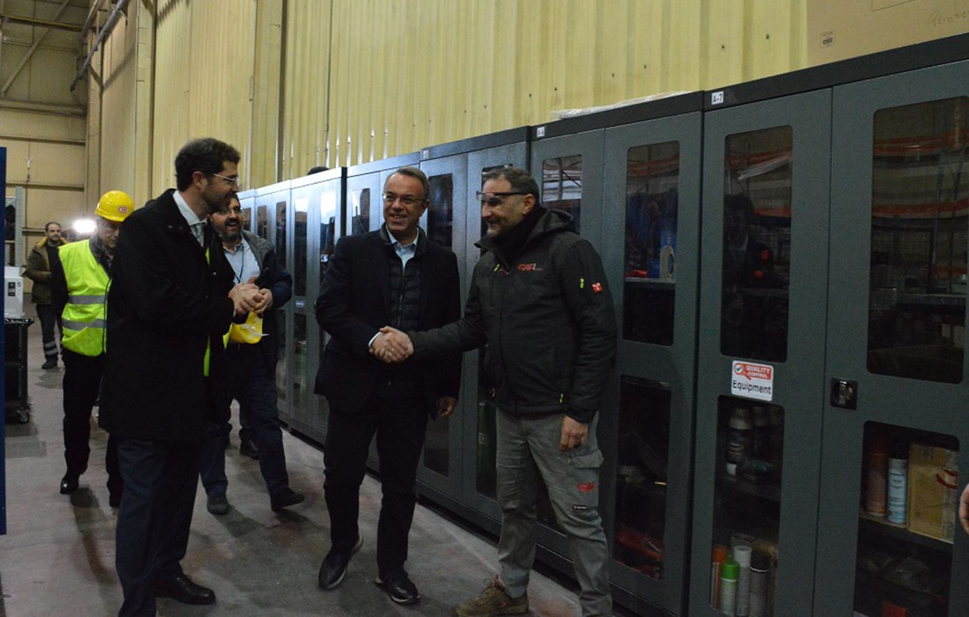 Επίσκεψη στο εργοστάσιο της εταιρείας NK trailers στον Βόλο, όπου γίνεται η αναβάθμιση 14 συρμών της Γραμμής 1 του Μετρό της Αθήνας πραγματοποίησε, σήμερα, ο υπουργός Υποδομών και Μεταφορών Χρήστος Σταϊκούρας, συνοδευόμενος από τον διευθύνοντα σύμβουλο της ΣΤΑΣΥ Αθανάσιο Κοτταρά.