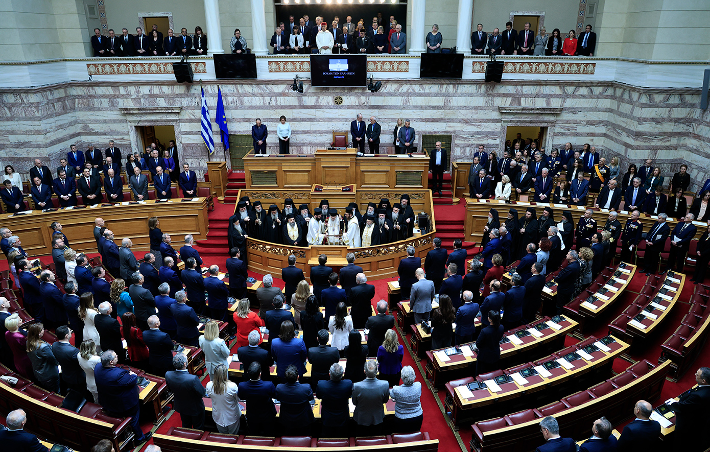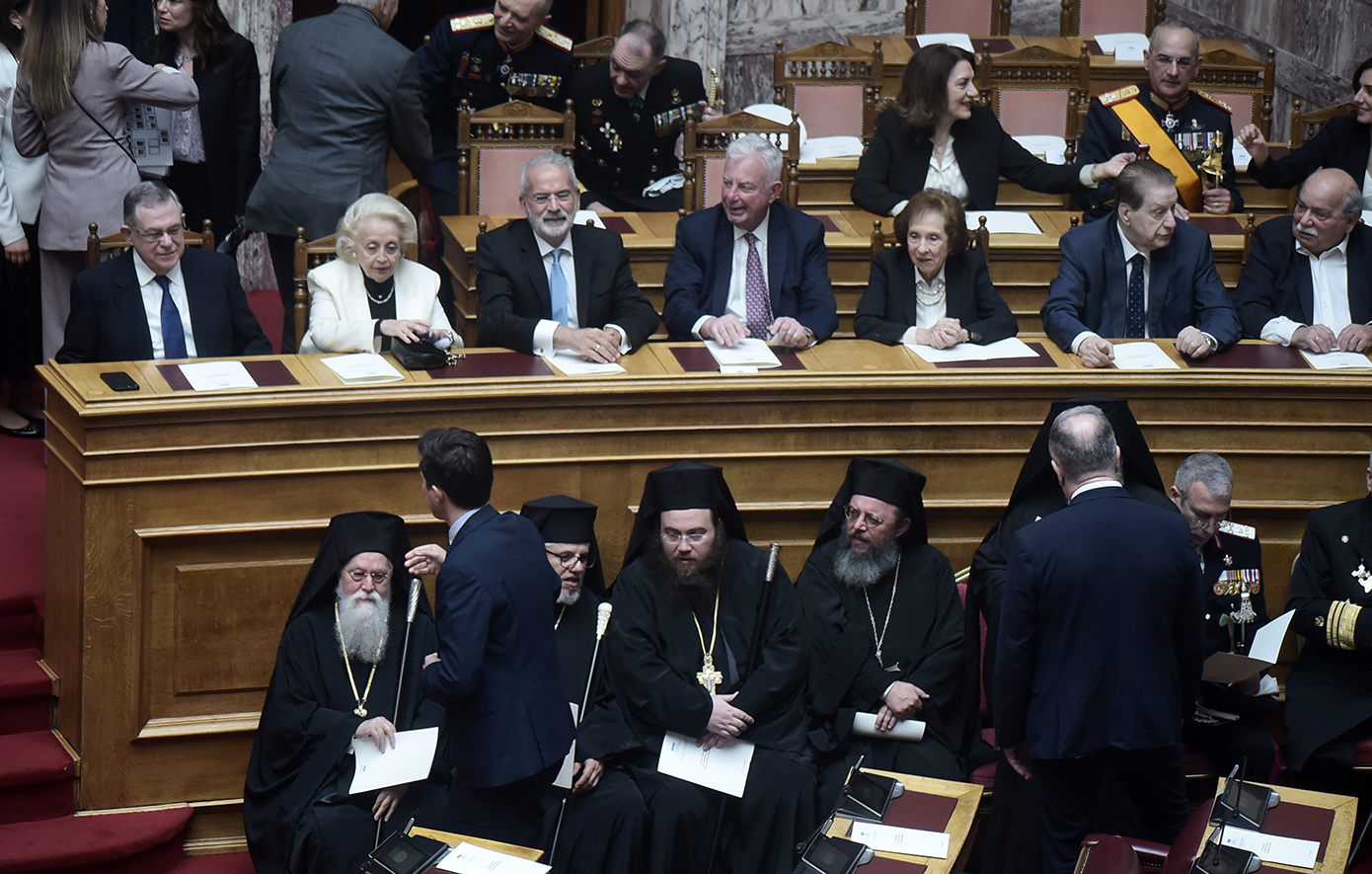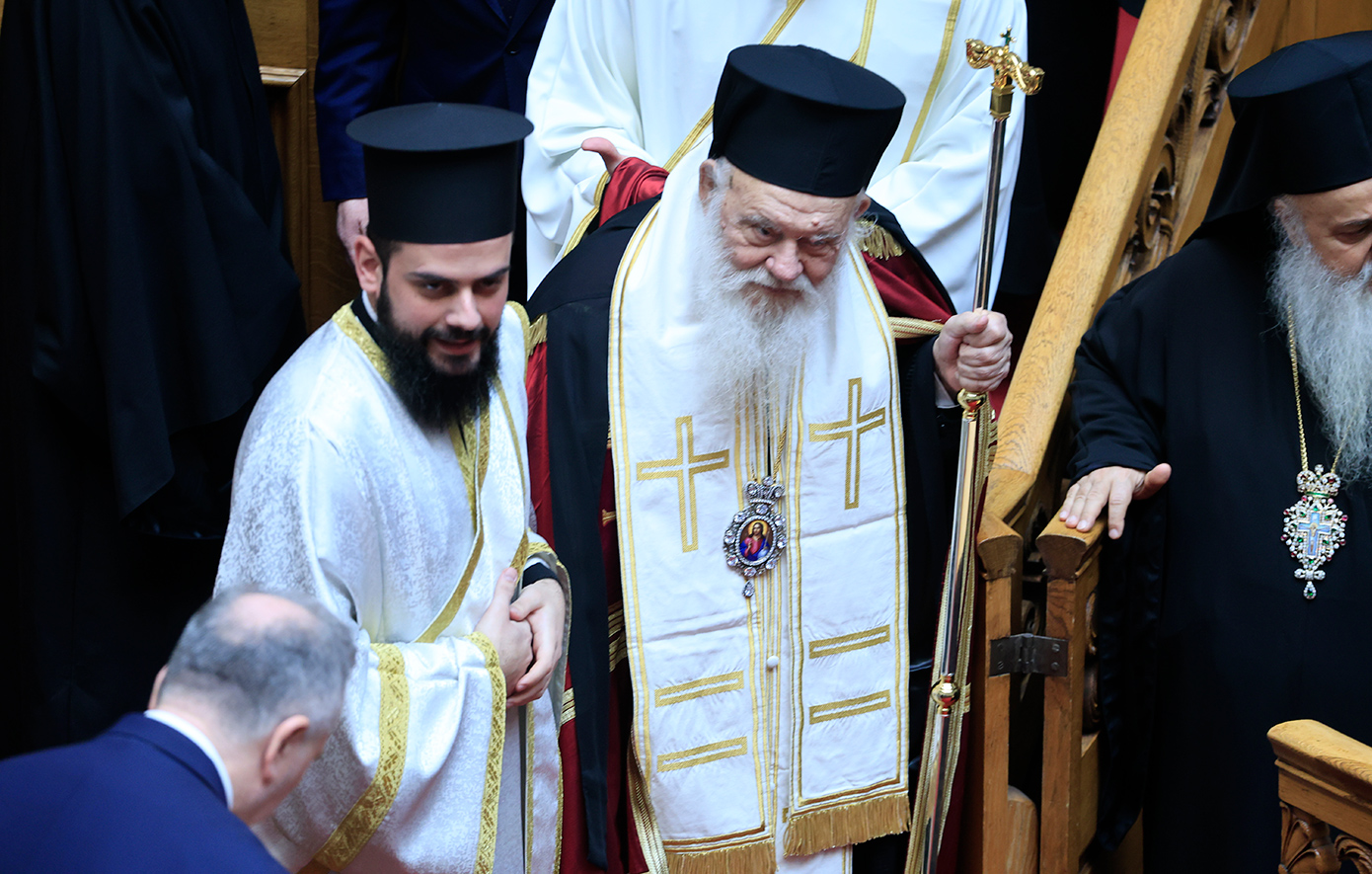 Ακολούθως, εκλήθη ο β’ αντιπρόεδρος της Βουλής, Γ. Γεωργαντάς να συνοδεύσει στην αίθουσα του κοινοβουλίου τον Μακαριότατο Αρχιεπίσκοπο Αθηνών και πάσης Ελλάδος κ. Ιερώνυμο και τα συνοδεύοντα αυτόν μέλη της Ιεράς Συνόδου της Εκκλησίας της Ελλάδος.