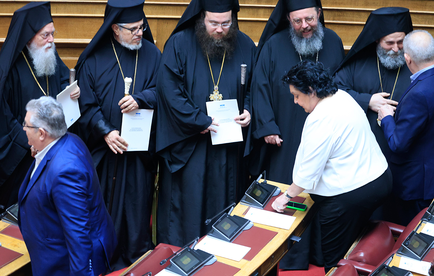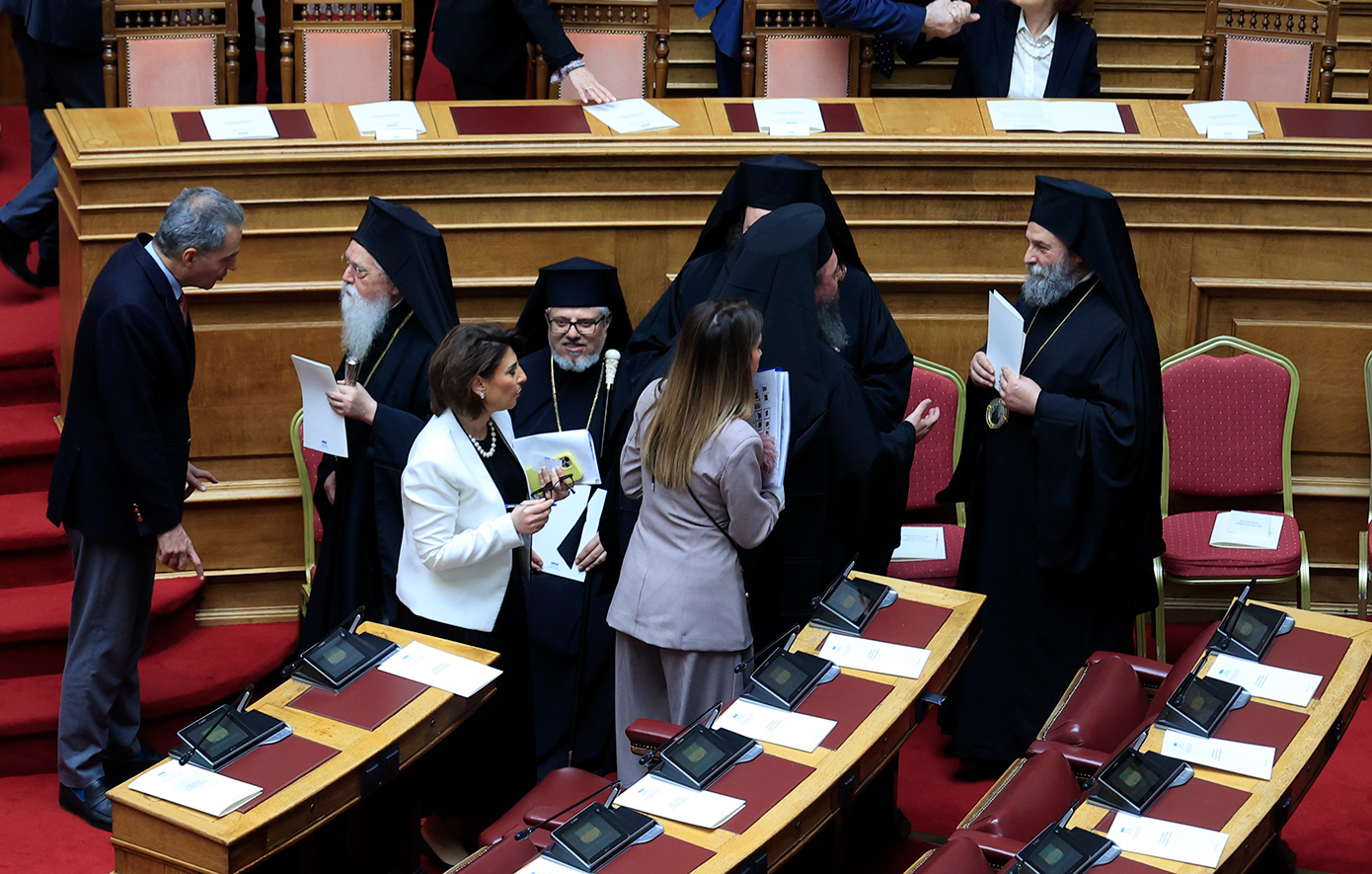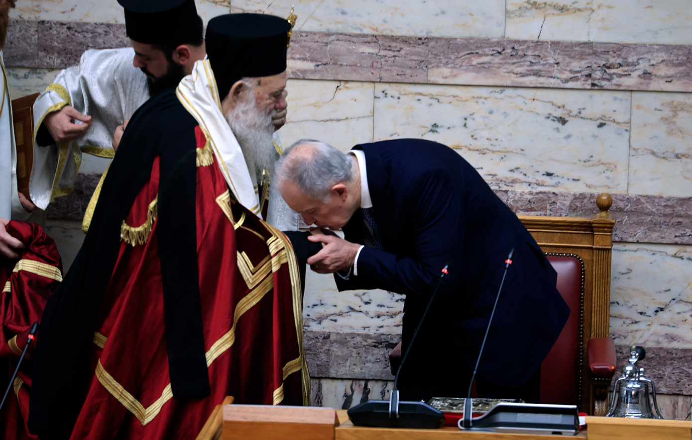 Ακολούθως, εκλήθη ο β’ αντιπρόεδρος της Βουλής, Γ. Γεωργαντάς να συνοδεύσει στην αίθουσα του κοινοβουλίου τον Μακαριότατο Αρχιεπίσκοπο Αθηνών και πάσης Ελλάδος κ. Ιερώνυμο και τα συνοδεύοντα αυτόν μέλη της Ιεράς Συνόδου της Εκκλησίας της Ελλάδος.