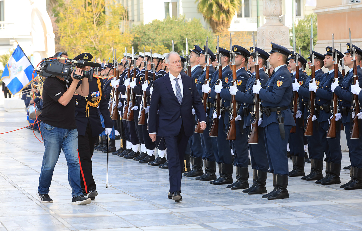 Τον κ. Τασούλα υποδέχθηκαν στην είσοδο του Άγνωστου Στρατιώτη στο Μέγαρο της Βουλής, ο πρωθυπουργός Κυριάκος Μητσοτάκης και ο πρόεδρος της Βουλής των Ελλήνων Νικήτας Κακλαμάνης. Στο μνημείο, είχαν παραταχθεί Αγήματα των Ενόπλων Δυνάμεων προς επιθεώρηση από τον νέο Πρόεδρο της Δημοκρατίας.