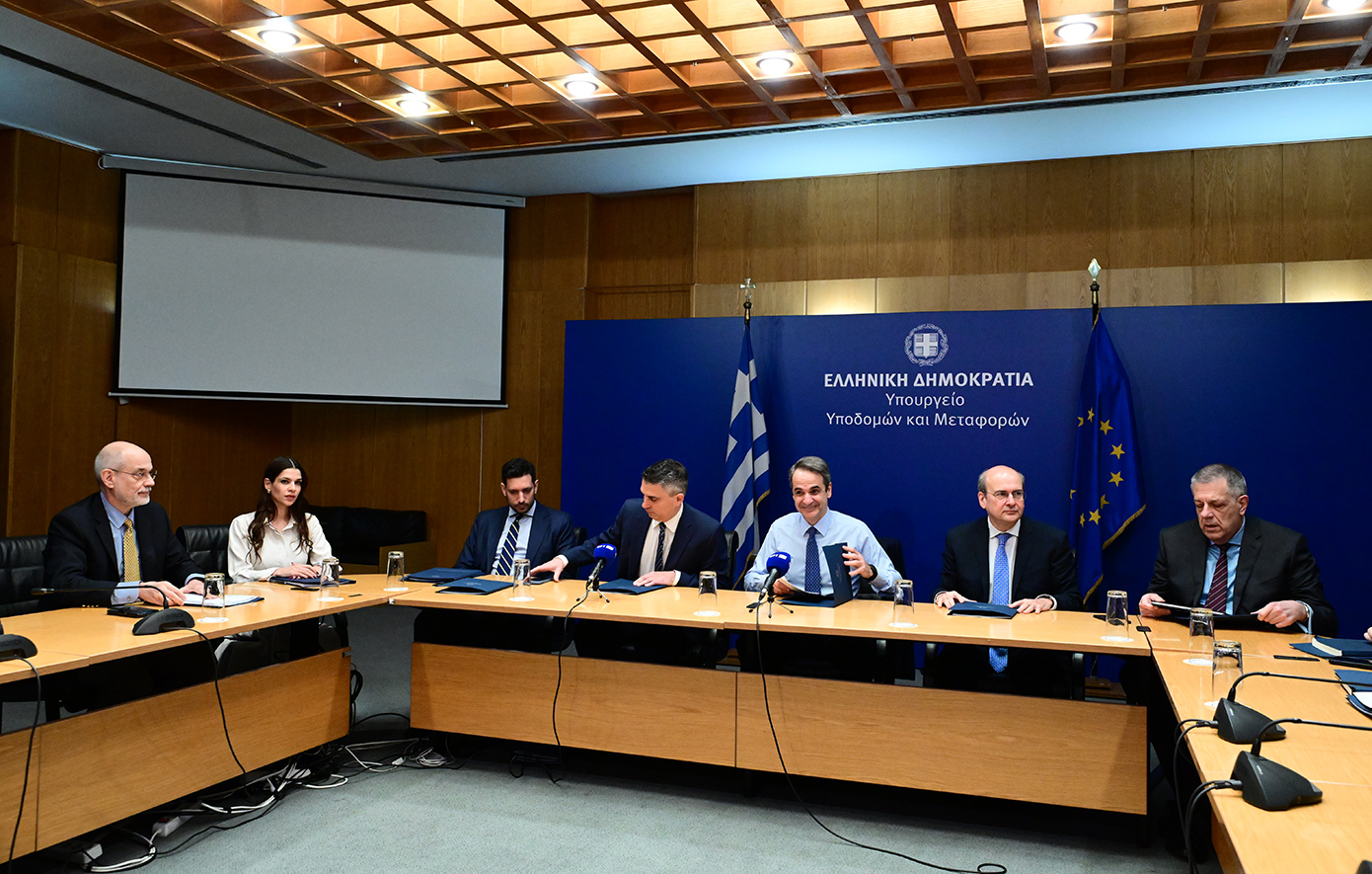 Τον πρωθυπουργό υποδέχτηκαν ο νέος υπουργός Μεταφορών και Υποδομών, Χρίστος Δήμας, ο αναπληρωτής υπουργός Μεταφορών, Κωνσταντίνος Κυρανάκης, και ο υφυπουργός, Νίκος Ταχιάος, ενώ στη σύσκεψη συμμετέχει και ο Κωστής Χατζηδάκης, ο νέος αντιπρόεδρος της κυβέρνησης.