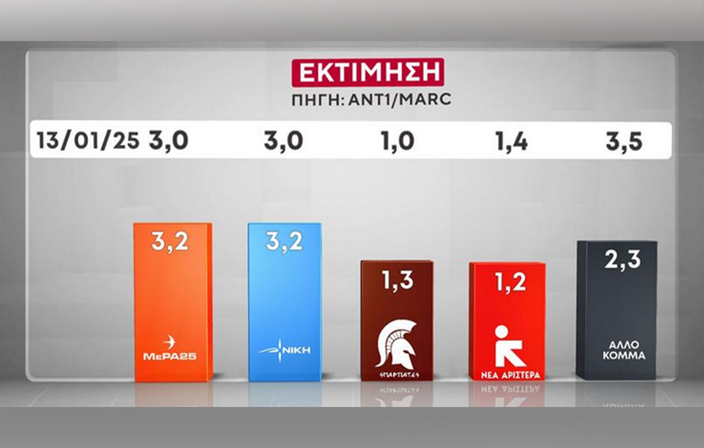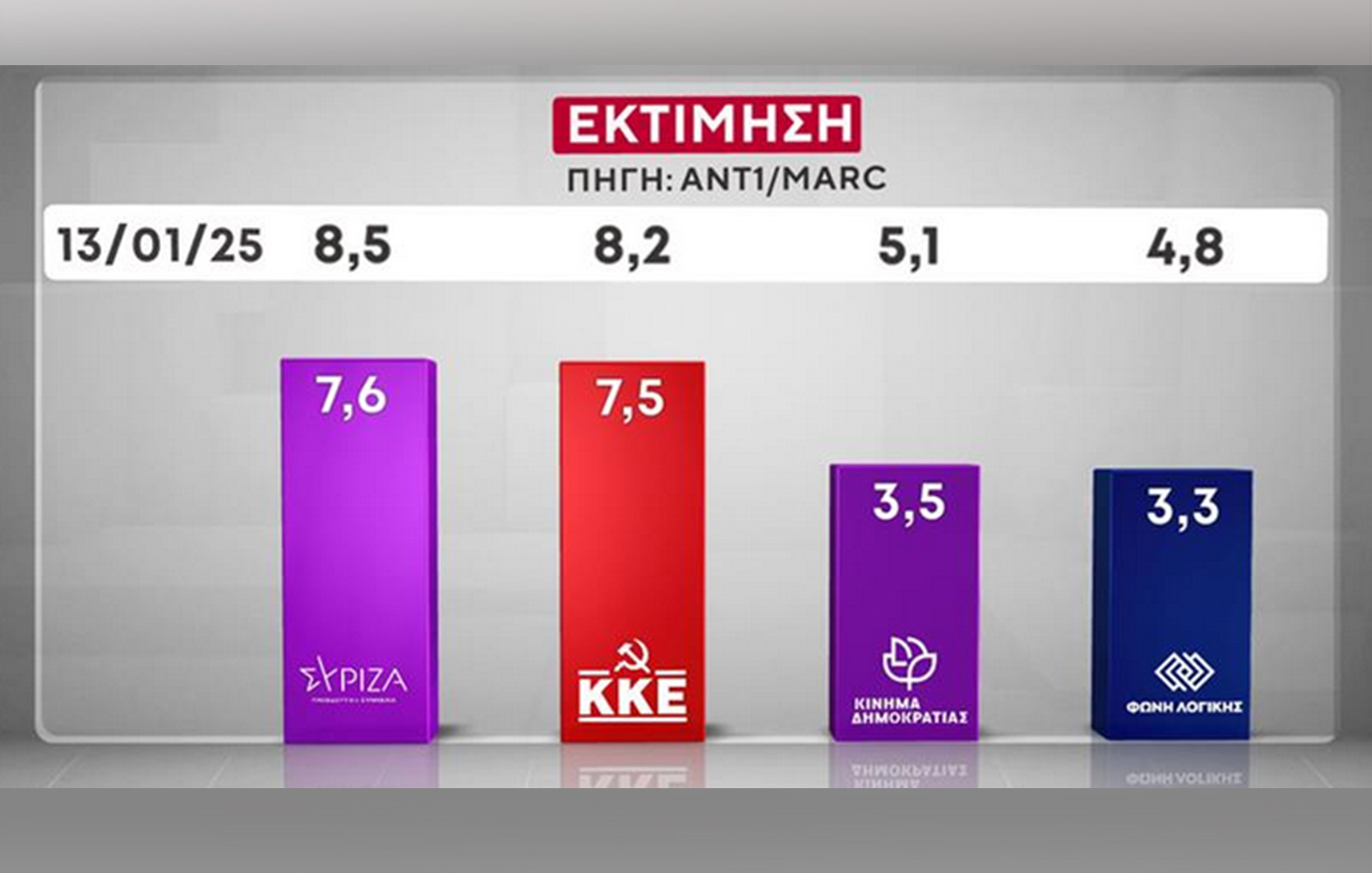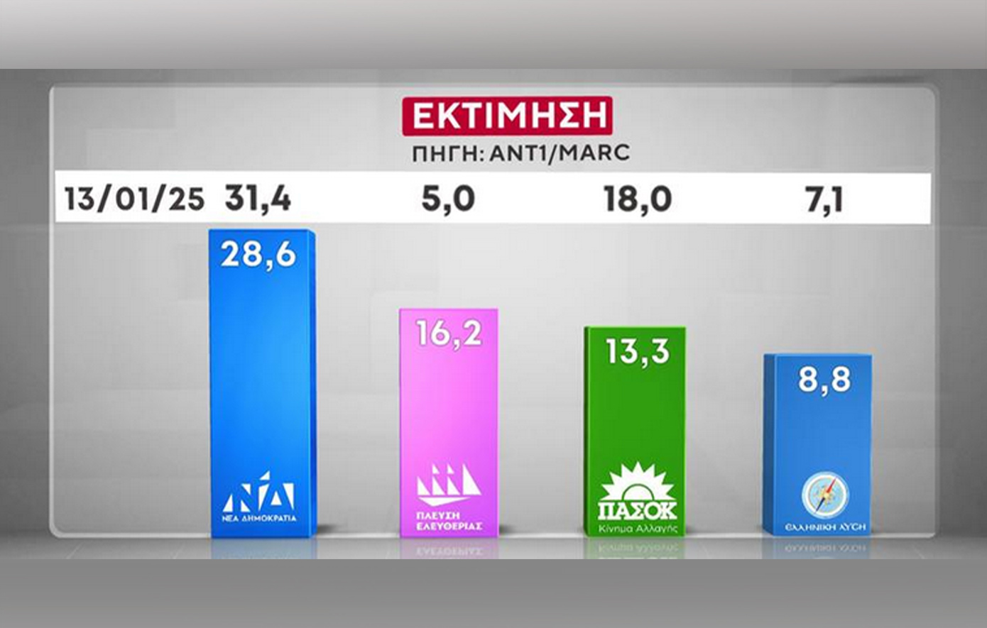 Την εδραίωση της Πλεύσης Ελευθερίας στη δεύτερη θέση πίσω από τη Νέα Δημοκρατία που προηγείται με περισσότερες από 12 μονάδες διαφορά καταγράφει δημοσκόπηση της MARC για λογαριασμό του ANT1.