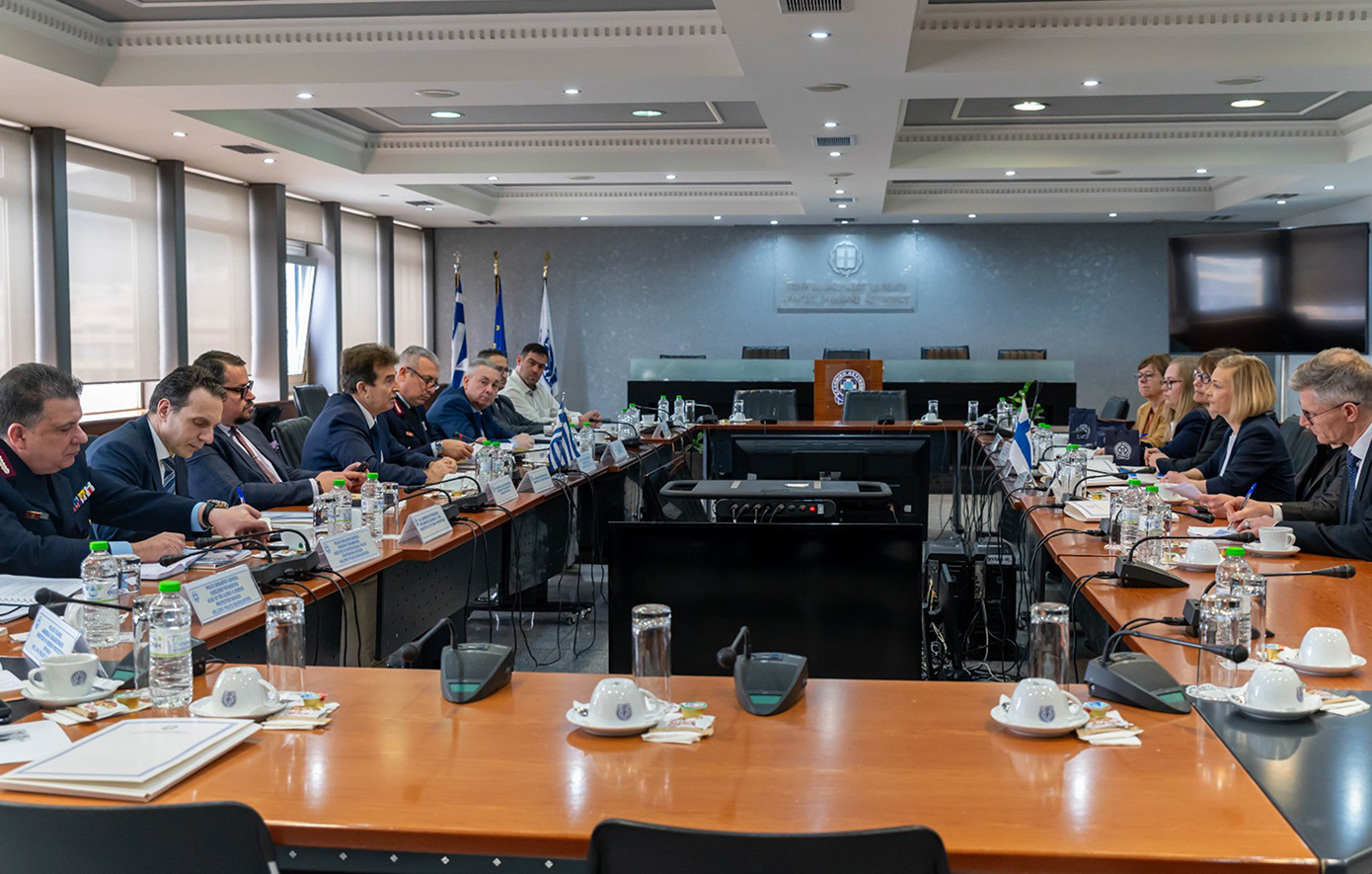 O υπουργός Προστασίας του Πολίτη Μ. Χρυσοχοΐδης συναντήθηκε με τη Φινλανδή υπουργό Εσωτερικών Mari Rantanen, σήμερα στο Υπουργείο, παρουσία του Αρχηγού της ΕΛΑΣ, Αντιστράτηγου Δημήτριου Μάλλιου.