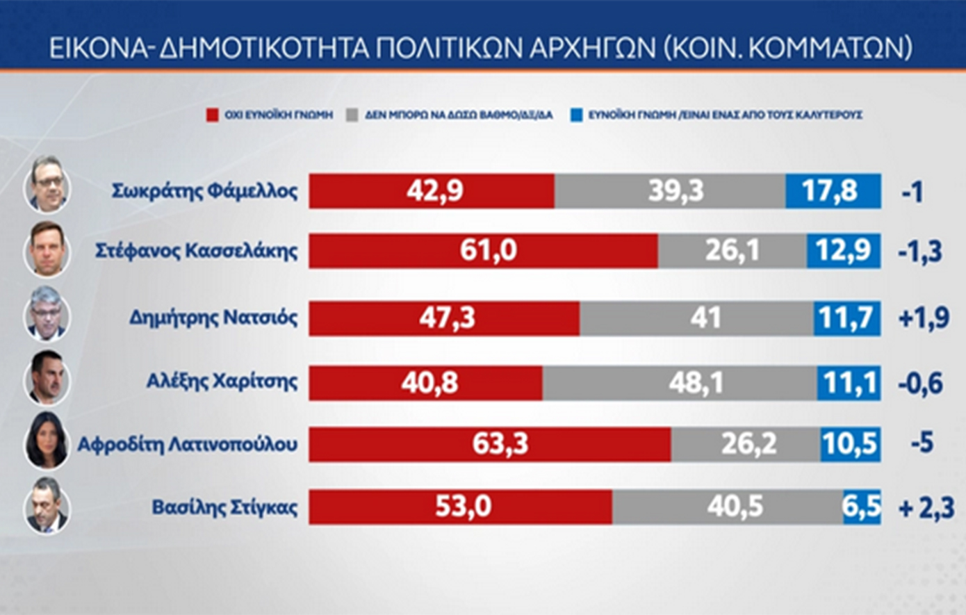 - Ο Σωκράτης Φάμελλος με 17,8% θετικές και 42,9% αρνητικές