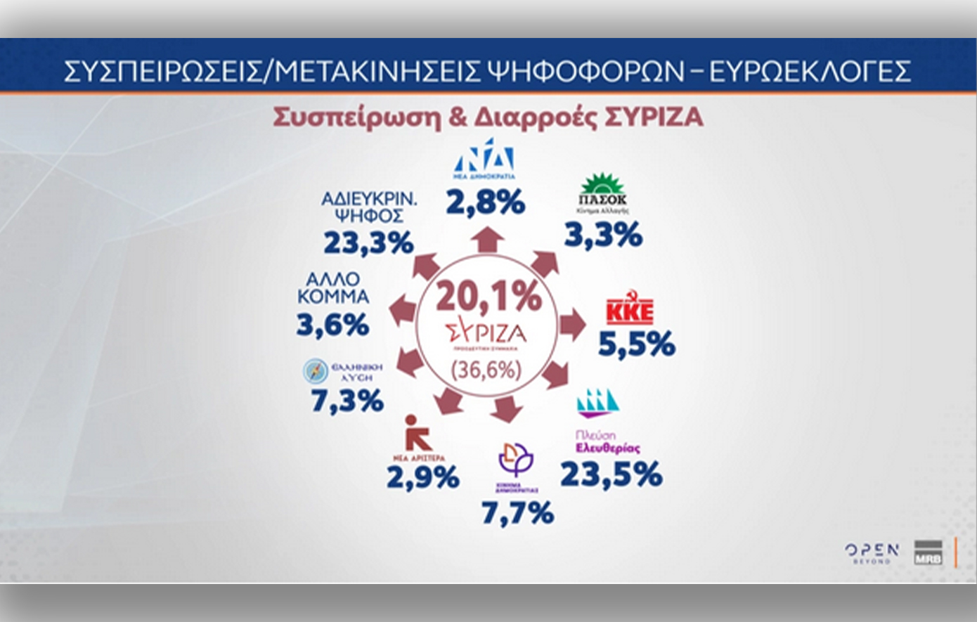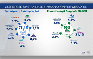 Συγκεκριμένα, οι διαρροές από το κόμμα της αξιωματικής αντιπολίτευσης προς την Πλεύση φτάνουν το 21,1%, ενώ από τον ΣΥΡΙΖΑ το 23,5%.