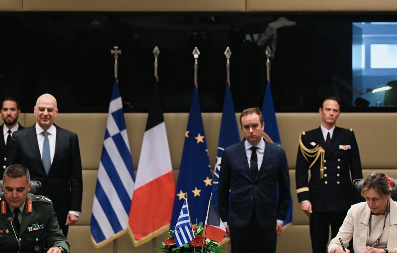 Με τον Γάλλο Υπουργό Άμυνας κ. Sébastien Lecornu @SebLecornu, στην υπογραφή της Σύμβασης Προμήθειας 16 πυραύλων EXOCET MM40B3.
