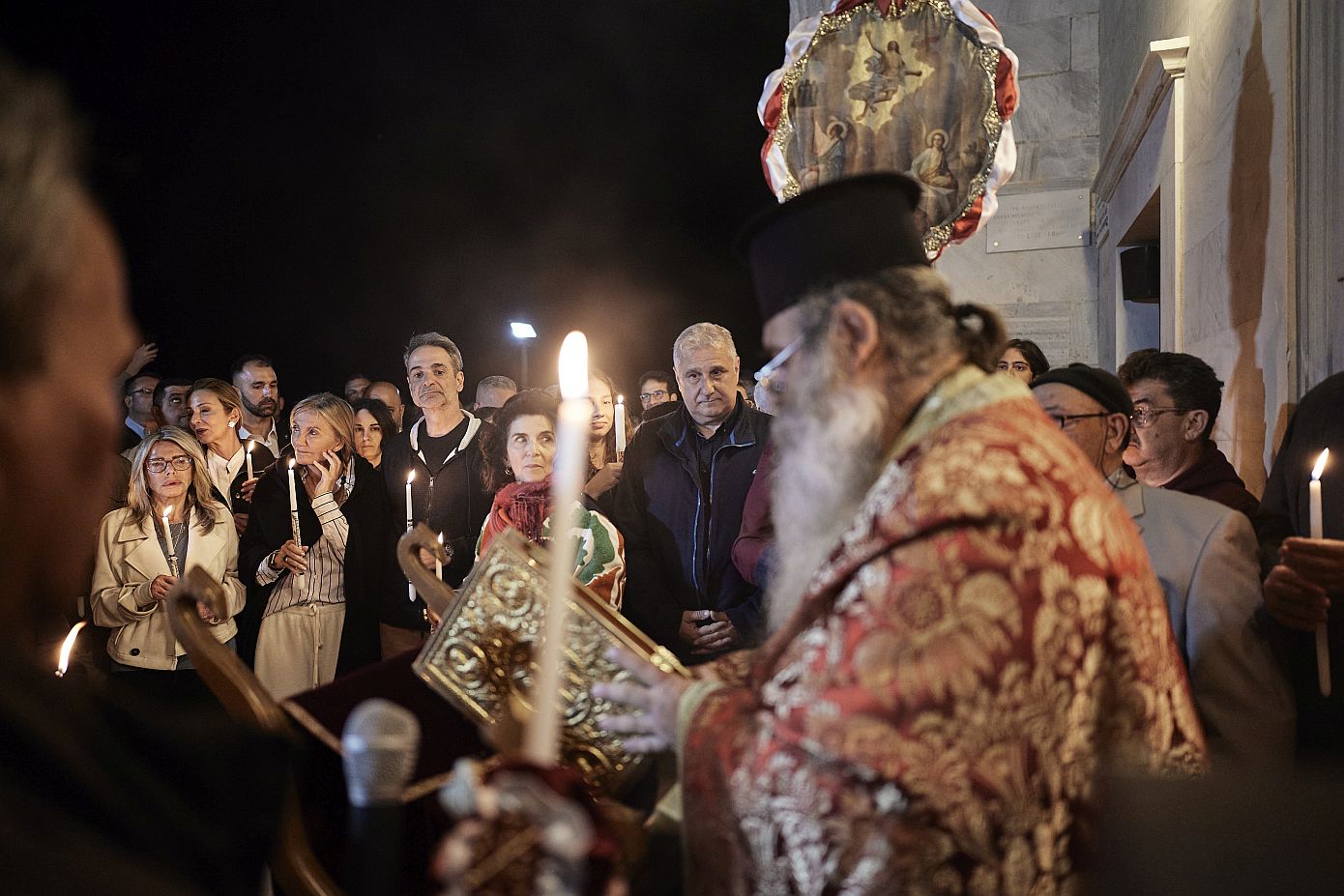 Ο Πρωθυπουργός Κυριάκος Μητσοτάκης, συνοδευόμενος από τη σύζυγό του Μαρέβα Γκραμπόφσκι – Μητσοτάκη, παρακολούθησε την Ακολουθία της Αναστάσεως στον Ιερό Ναό Αγίας Τριάδας Καρδιανής Τήνου.