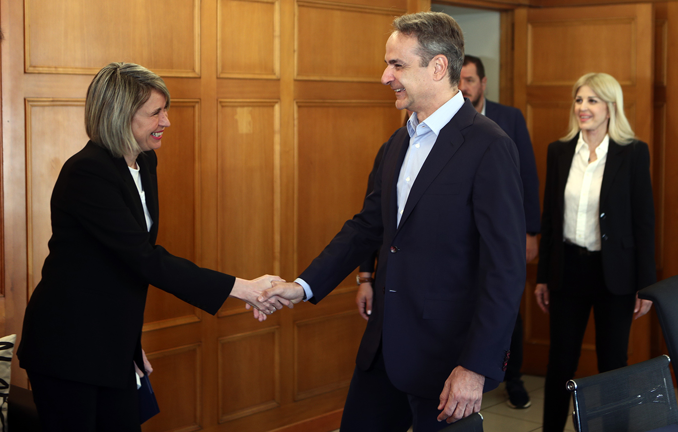 Τον Κυριάκο Μητσοτάκη υποδέχθηκαν η υπουργός, Δόμνα Μιχαηλίδου και η υφυπουργός Έλενα Ράπτη.