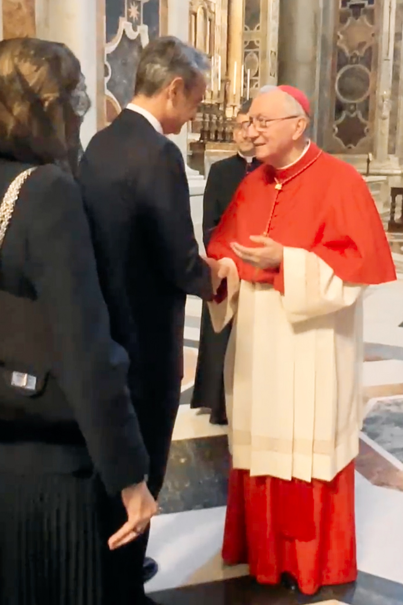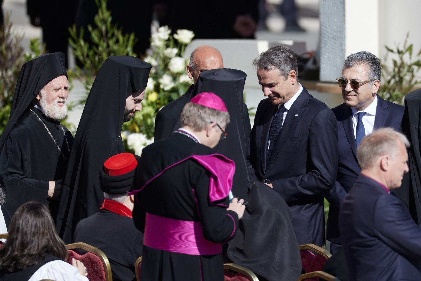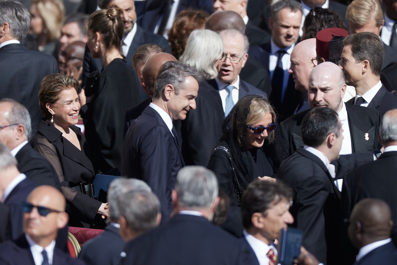 Ο πρωθυπουργός Κυριάκος Μητσοτάκης, συνοδευόμενος από τη σύζυγό του Μαρέβα Γκραμπόφσκι – Μητσοτάκη, έφτασε στην πλατεία του Αγίου Πέτρου στο Βατικανό, για την εξόδιο ακολουθία του Πάπα Φραγκίσκου.