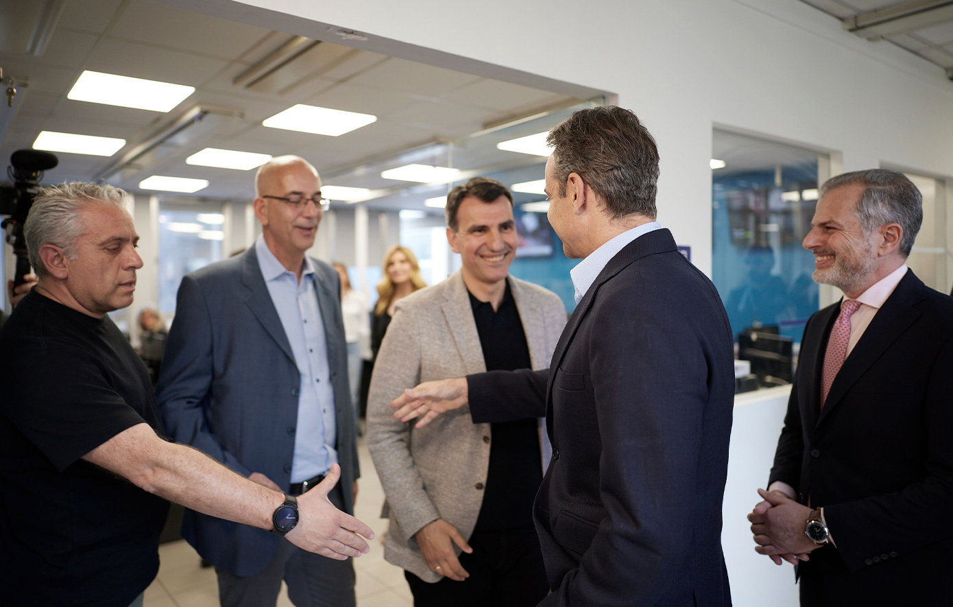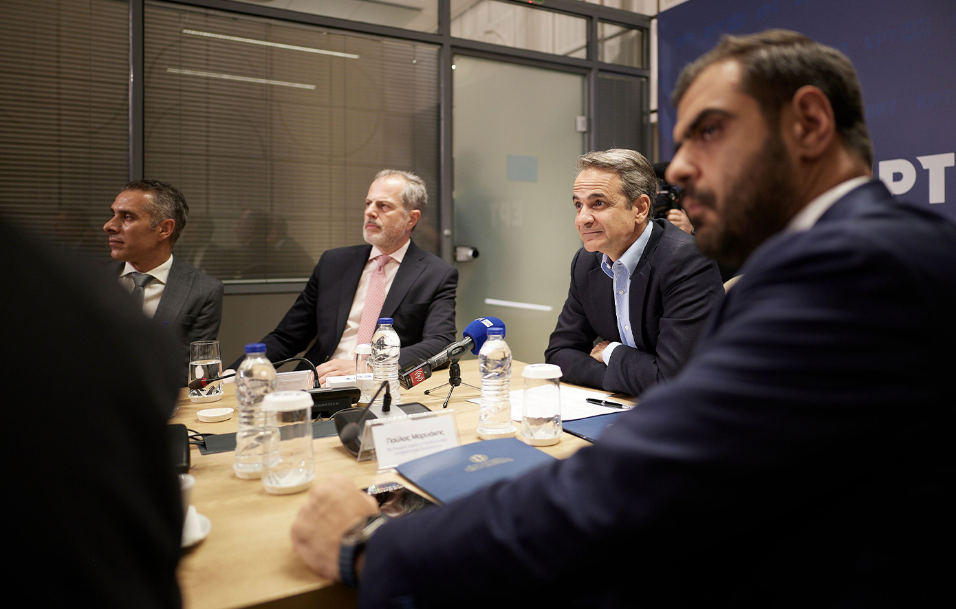 Ο Κυριάκος Μητσοτάκης είχε επίσης την ευκαιρία να επισκεφτεί την αίθουσα σύνταξης και να συνομιλήσει με τους εργαζόμενους, δημοσιογράφους, τεχνικούς και διοικητικό προσωπικό της δημόσιας ραδιοτηλεόρασης.