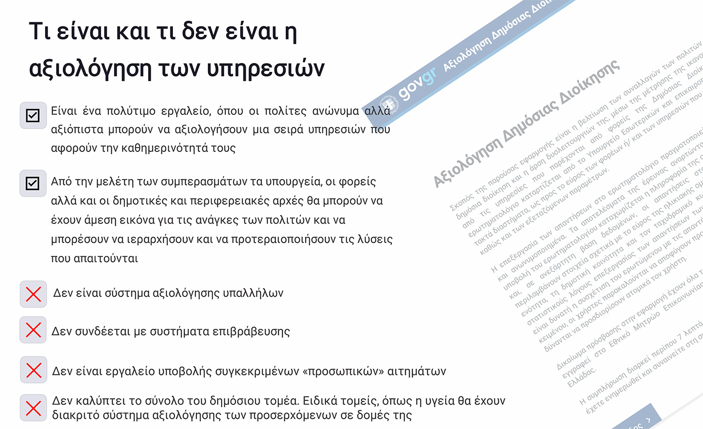 Ουσιαστικά ζητάμε λίγο από τον χρόνο των πολιτών για να μας δώσουν εξαιρετικά χρήσιμες πληροφορίες για το πώς μπορούμε να γίνουμε καλύτεροι. Αυτός είναι ο κεντρικός σκοπός αυτής της προσπάθειας: να μπορούμε να εντοπίζουμε αδυναμίες και να μπορούμε να επιτυγχάνουμε πραγματική πρόοδο.