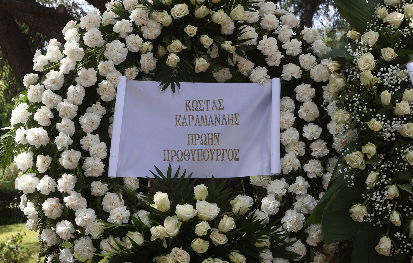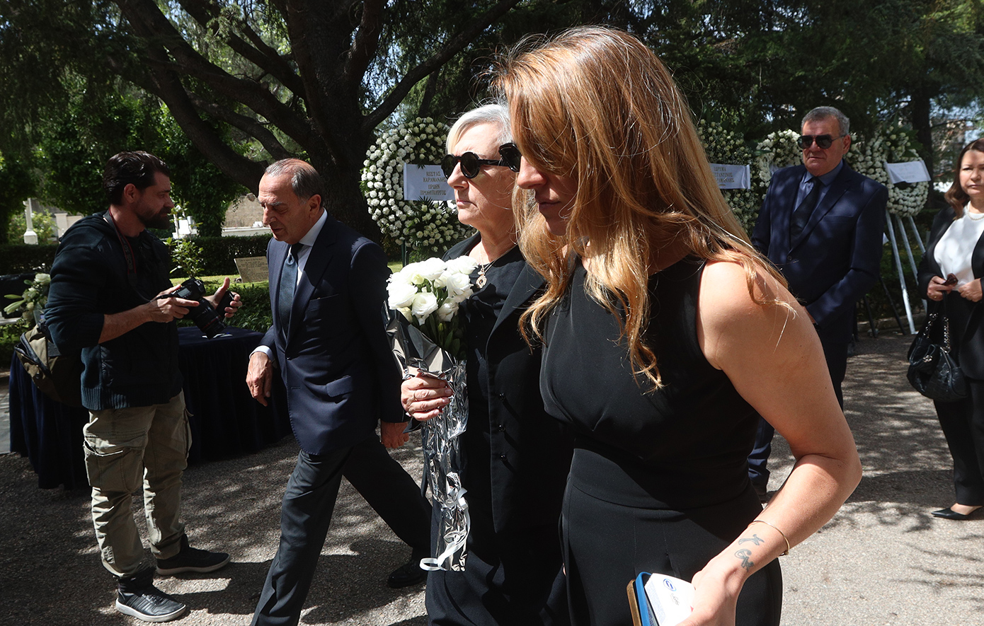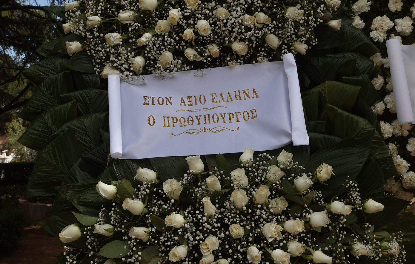 Η σορός του πολιτικού έφτασε στο κοιμητήριο της Κηφισιάς, καλυμμένη με την ελληνική σημαία και δίπλα βρισκόταν συνεχώς η κόρη του, Λώρα.