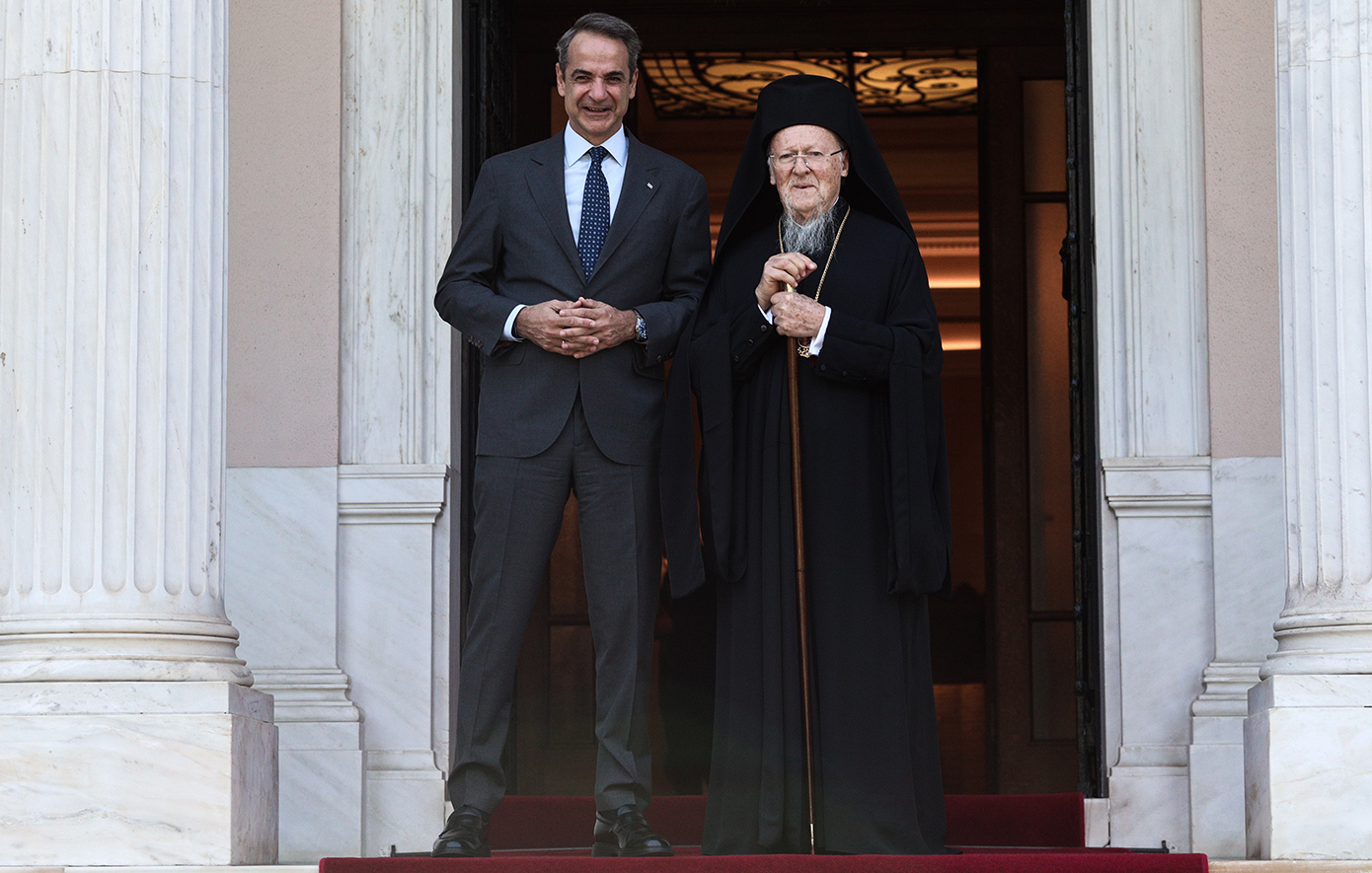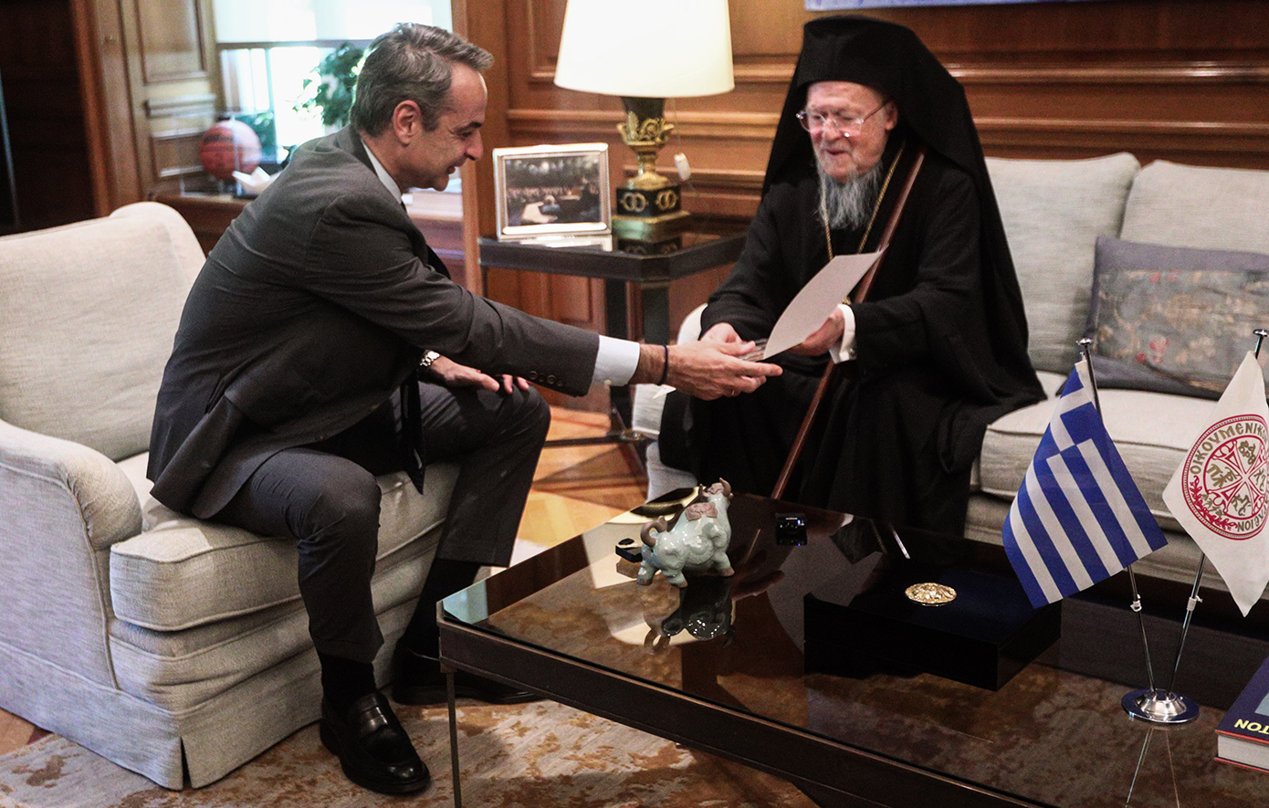 Ο Οικουμενικός Πατριάρχης έκανε δώρο στον πρωθυπουργό μια φωτογραφία από την ημέρα που βρέθηκαν στο Βατικανό για την κηδεία του πάπα Φραγκίσκου.
