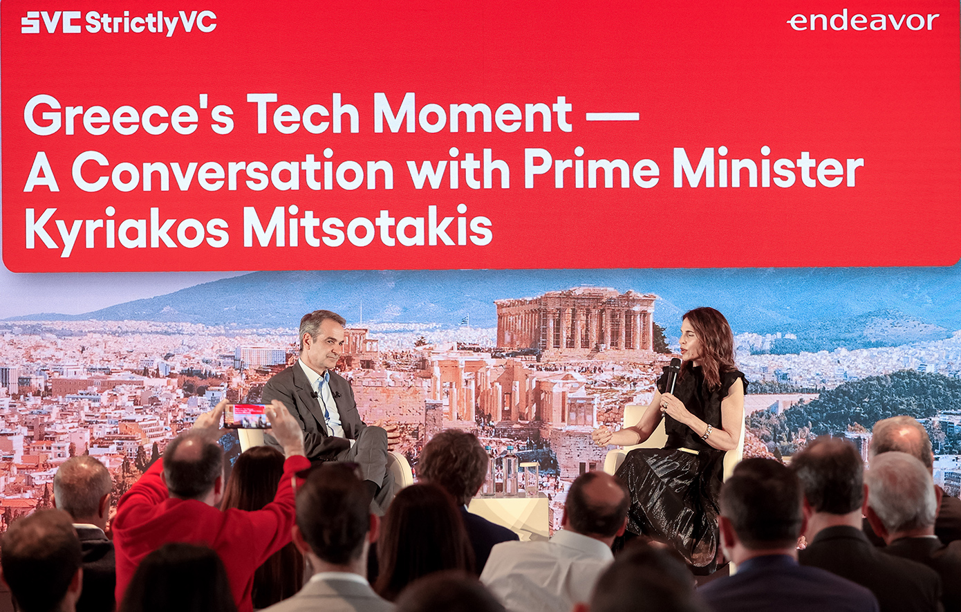 Ο Κυριάκος Μητσοτάκης συζητά με τη δημοσιογράφο Connie Loizos στο πλαίσιο εκδήλωσης της διαδικτυακής εφημερίδας TechCrunch, στο Κέντρο Πολιτισμού Ίδρυμα Σταύρος Νιάρχος.
