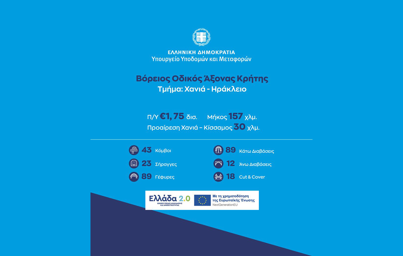 Επιτρέψτε μου, κ. Πρωθυπουργέ, να πω ότι όλοι οι Κρητικοί μετρούν αντίστροφα μέχρι την ημέρα που ο Βόρειος Οδικός Άξονας της Κρήτης, η «ραχοκοκαλιά» που θα διατρέχει και τους τέσσερις νομούς, θα παραδοθεί στην κυκλοφορία, συμβάλλοντας καθοριστικά στην παραγωγική και οικονομική ανασυγκρότηση του νησιού.