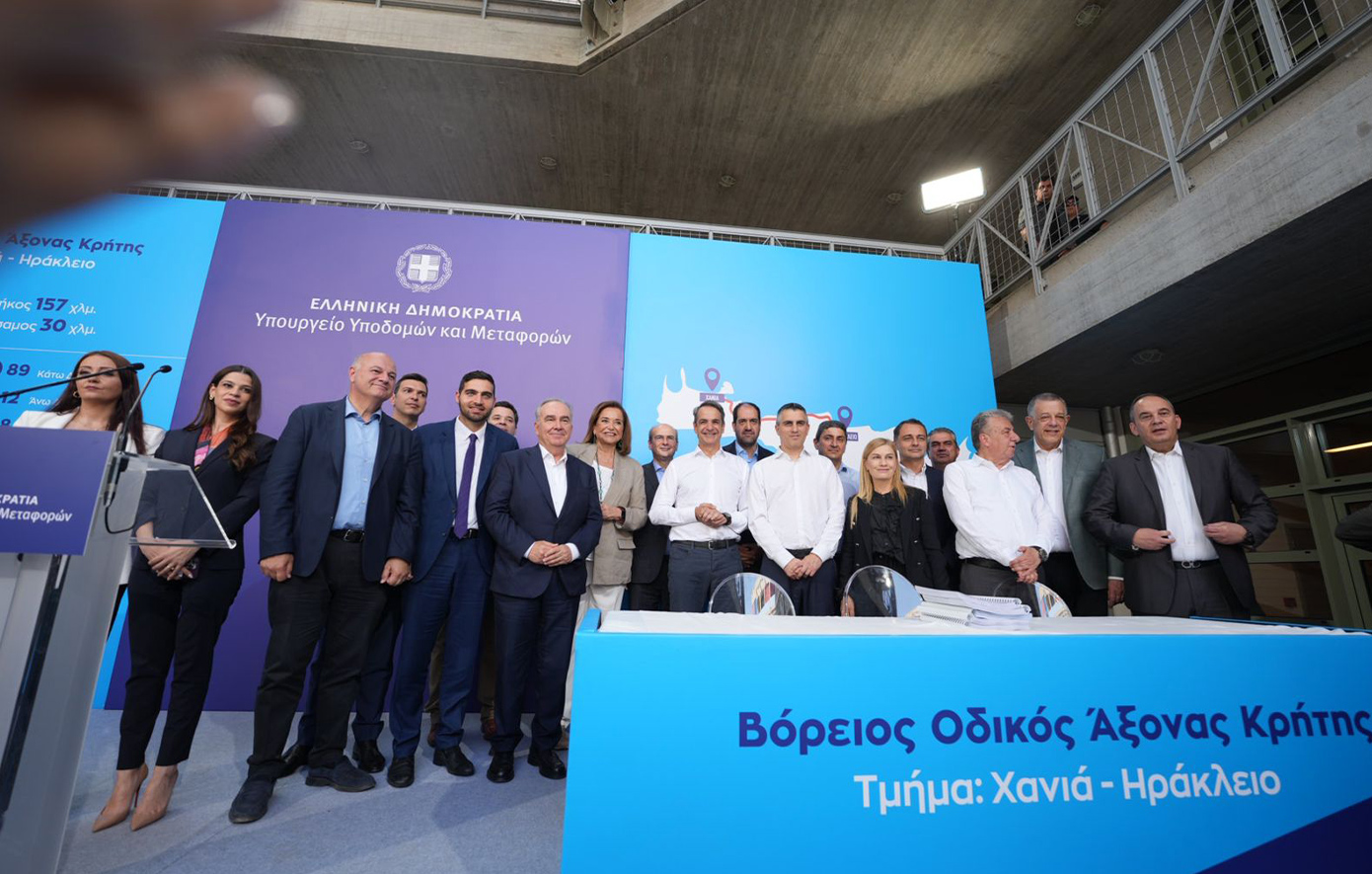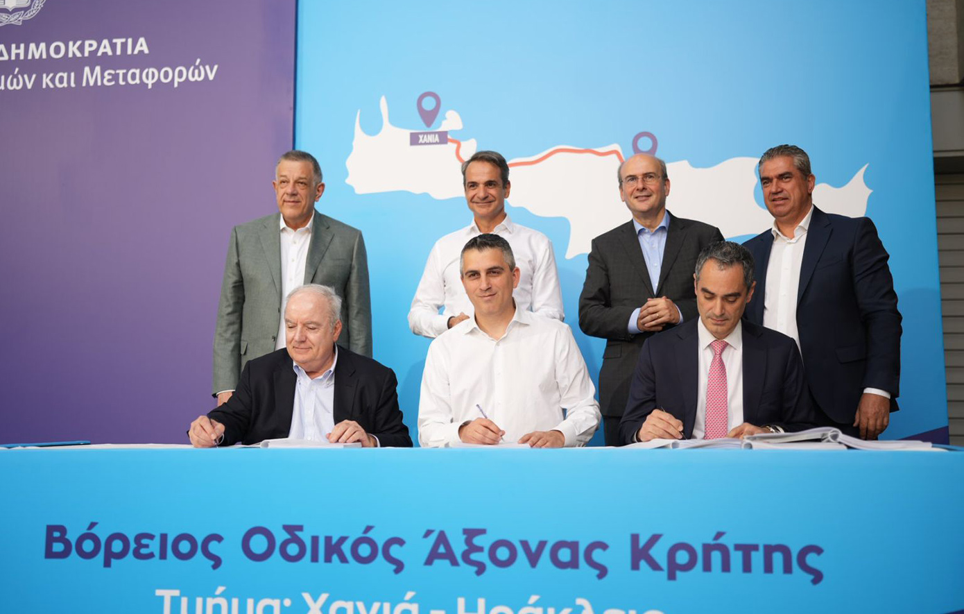 Παρουσία του πρωθυπουργού, Κυριάκου Μητσοτάκη, υπεγράφη, από τον υπουργό Υποδομών και Μεταφορών Χρίστο Δήμα, η σύμβαση παραχώρησης για τη «Μελέτη – Κατασκευή – Χρηματοδότηση – Λειτουργία – Συντήρηση και Εκμετάλλευση του Βόρειου Οδικού Άξονα Κρήτης (Β.Ο.Α.Κ.) στο τμήμα Χανιά – Ηράκλειο», σήμερα, στο Πολιτιστικό Συνεδριακό Κέντρο Ηρακλείου.