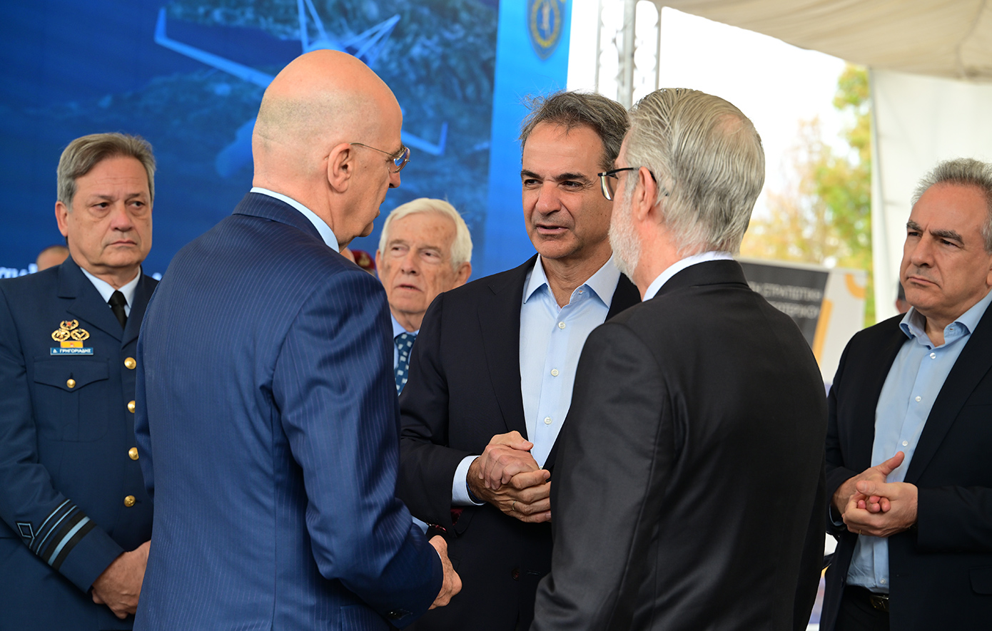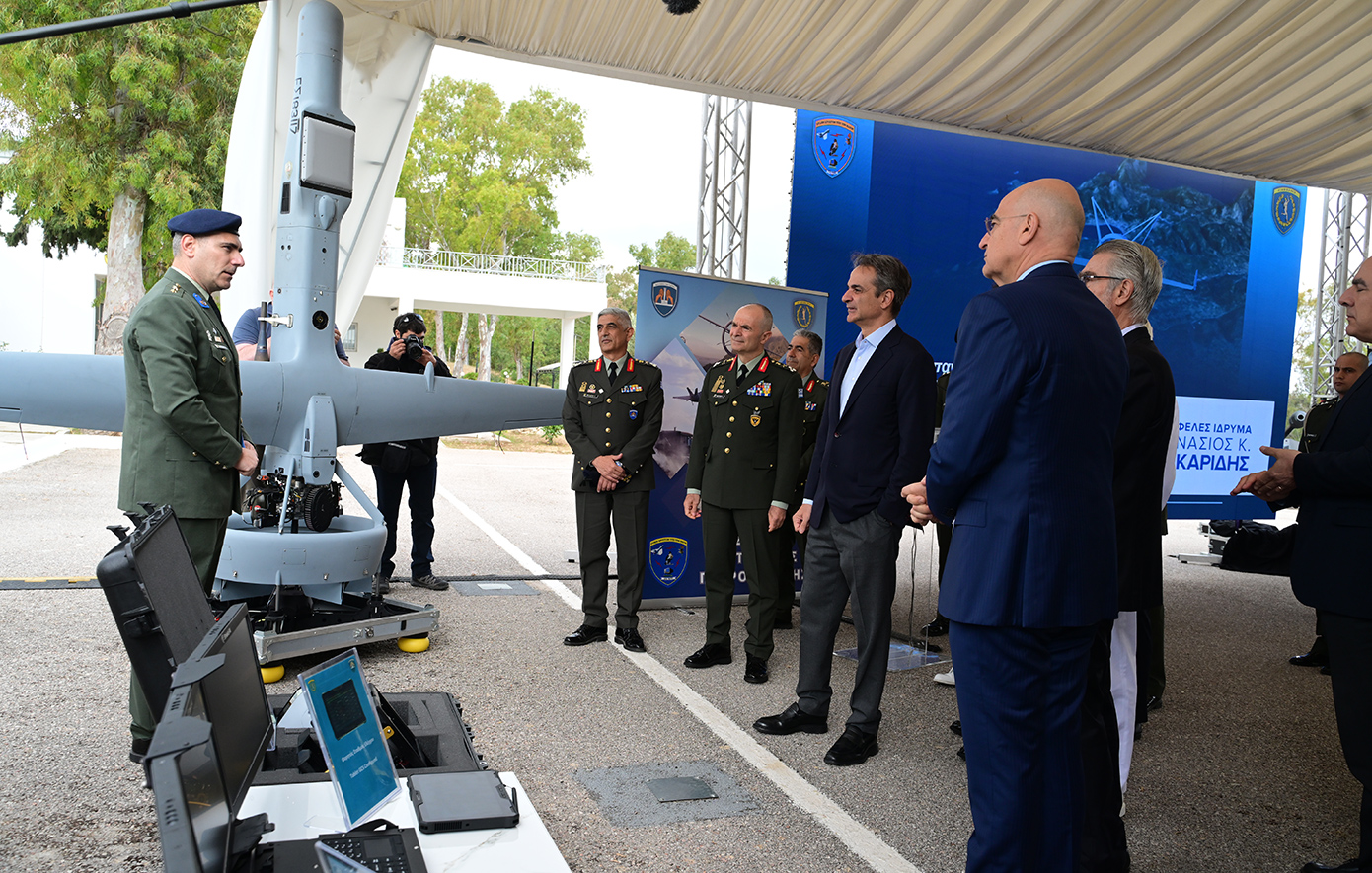 Στην τελετή ένταξης των προηγμένης τεχνολογίας μη επανδρωμένων αεροσκαφών V-BAT στην Ανώτατη Στρατιωτική Διοίκηση Εσωτερικού και Νήσων (ΑΣΔΕΝ), δωρεά του κοινωφελούς ιδρύματος «Αθανάσιος Κ. Λασκαρίδης», παραβρέθηκε σήμερα ο πρωθυπουργός Κυριάκος Μητσοτάκης.