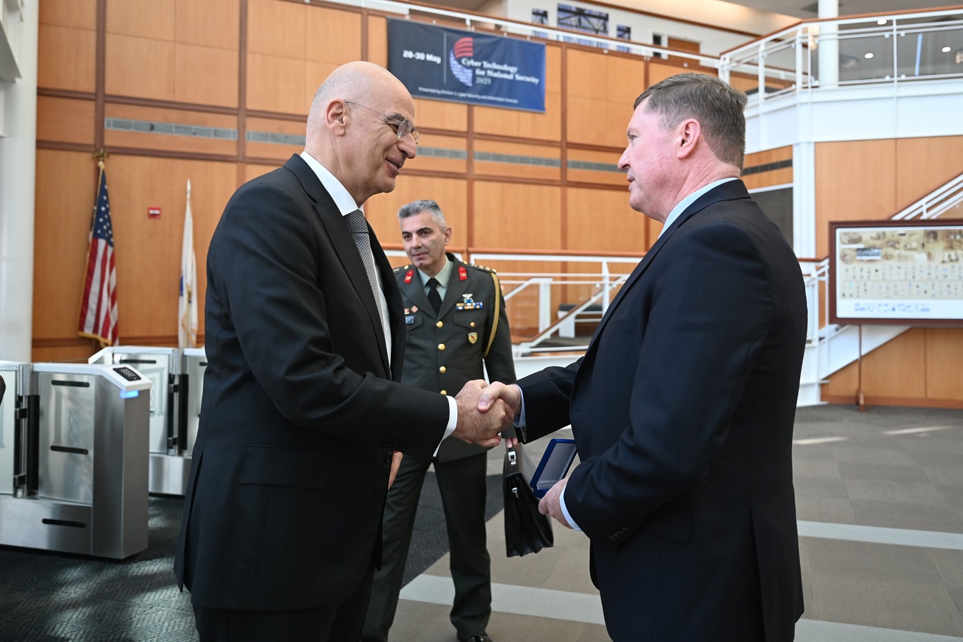 Όπως ανακοινώθηκε, ο κ. Δένδιας συναντήθηκε στη Βοστόνη με ακαδημαϊκούς και επιστήμονες που δραστηριοποιούνται στον τομέα καινοτόμων προϊόντων διττής χρήσης, με τους οποίους συζήτησε, μεταξύ άλλων, για το ελληνικό οικοσύστημα αμυντικής καινοτομίας στο πλαίσιο της «Ατζέντας 2030» και το μέλλον της χρήσης της τεχνητής νοημοσύνης στην αντιμετώπιση ζητημάτων ασφάλειας. Μετέβη, επίσης, στο εργαστήριο του ΜΙΤ Lincoln Laborator, εντός της αεροπορικής βάσης Hanscom, όπου παρακολούθησε παρουσιάσεις και ενημερώθηκε για τον τρόπο λειτουργίας του εργαστηρίου, το οποίο χρηματοδοτείται κυρίως από το υπουργείο Άμυνας των ΗΠΑ, προκειμένου να δημιουργεί νέα προϊόντα και να βρίσκει καινοτόμες λύσεις σε θέματα που θέτουν οι ένοπλες δυνάμεις της χώρας.