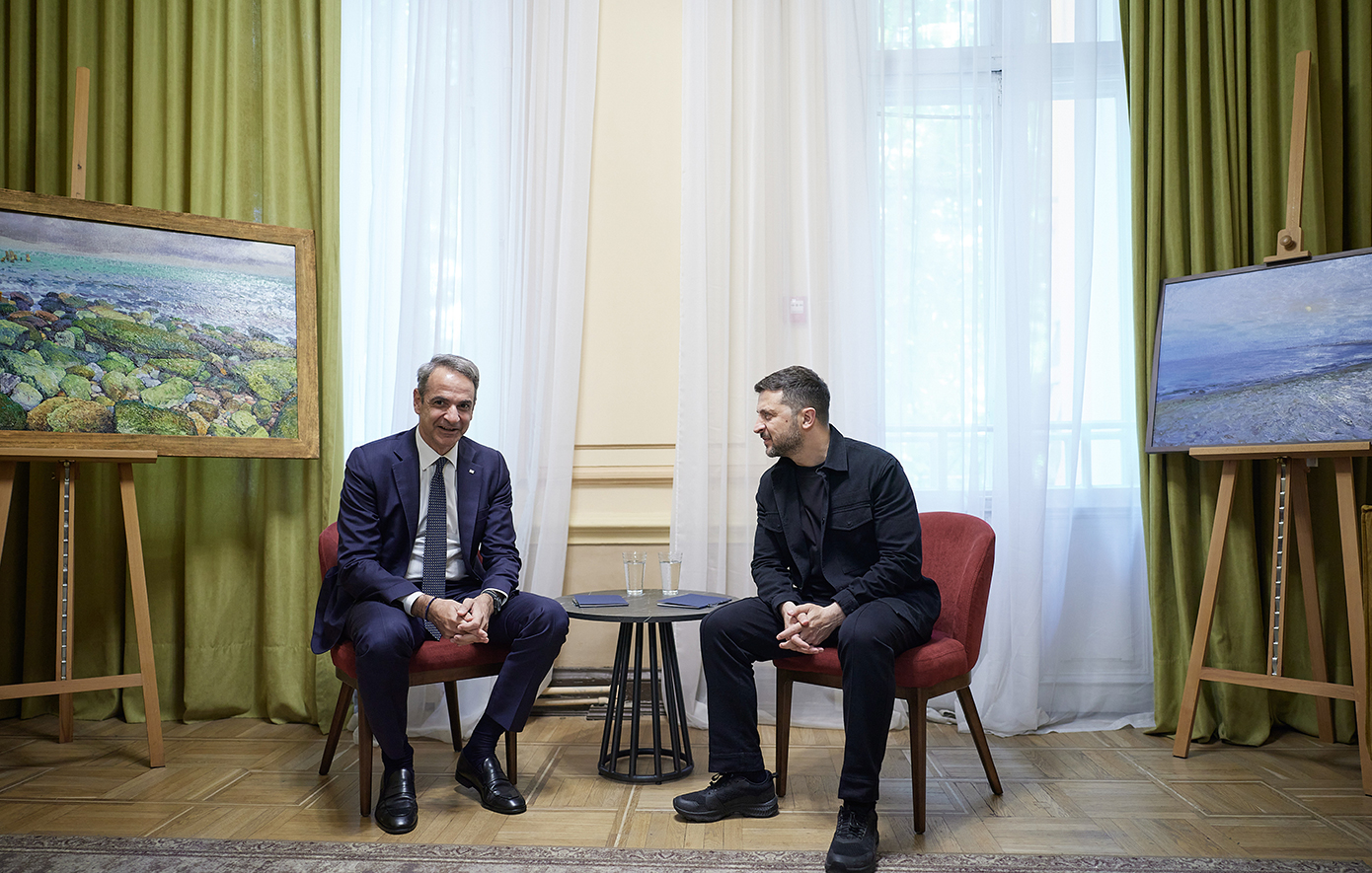 Και η Ελλάδα θα συνεχίσει να στηρίζει την Ουκρανία, όπως κάναμε από την αρχή, διπλωματικά, πολιτικά, οικονομικά, στρατιωτικά, ανθρωπιστικά. Οτιδήποτε μπορούμε να κάνουμε για να εργαστούμε προς την κατεύθυνση του τερματισμού αυτής της καταστροφής και της δυστυχίας της χώρας σας. Επαφίεται σε εσάς, μόνο η Ουκρανία πρέπει και θα αποφασίσει για την αποδοχή ή την απόρριψη οποιασδήποτε ειρηνευτικής φόρμουλας. Και πιστεύω ότι έχετε αποδείξει πολύ ξεκάθαρα ότι οι προθέσεις σας είναι πραγματικά ειλικρινείς, σε αντίθεση με εκείνες της άλλης πλευράς.