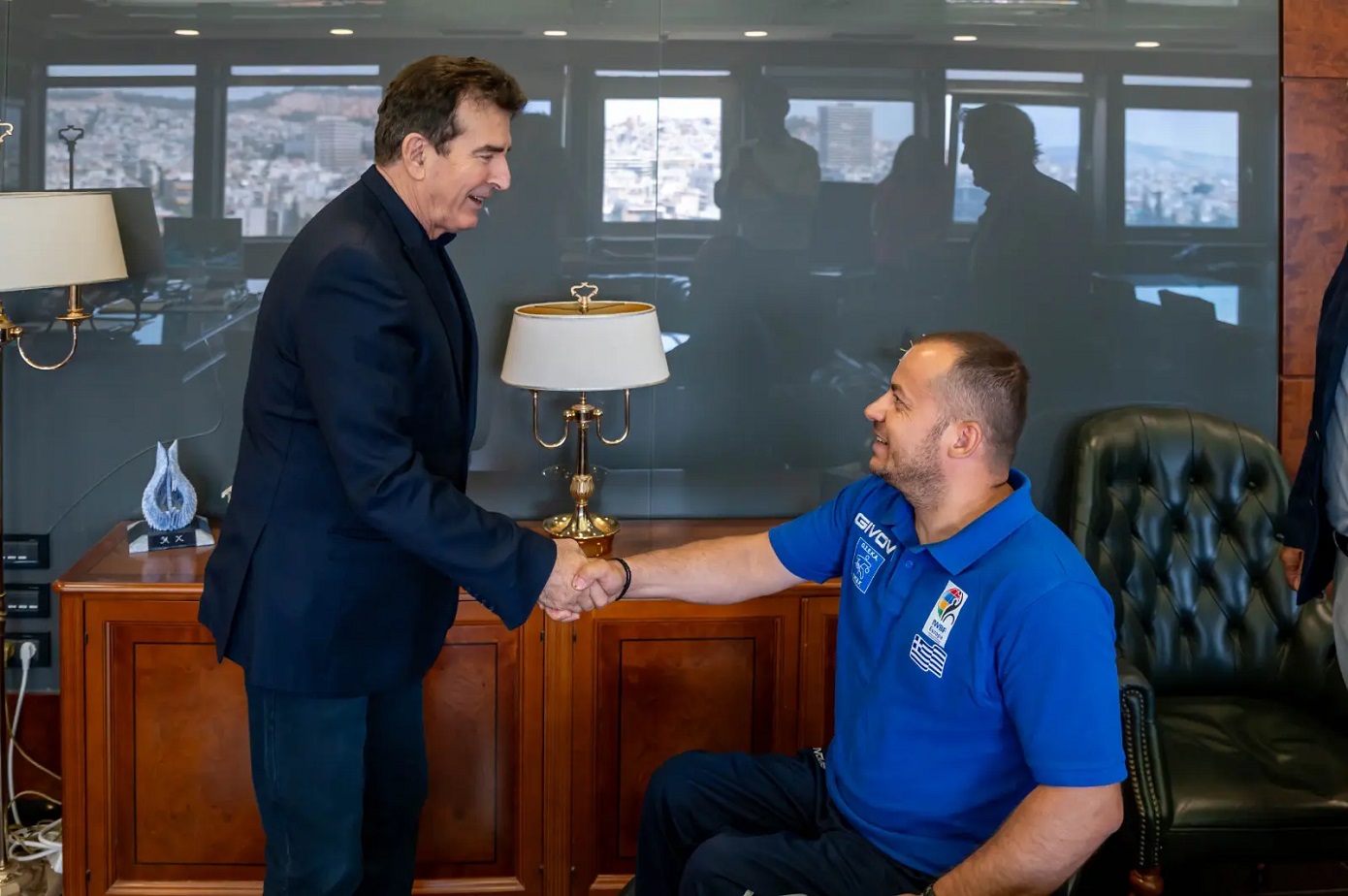 «Είμαστε δίπλα σας, συμπαραστάτες και θα συνεχίσουμε αυτή την προσπάθεια», τόνισε ο υπουργός Προστασίας του Πολίτη Μιχάλης Χρυσοχοΐδης, απευθυνόμενος στον πρόεδρο της Ομοσπονδίας Σωματείων Ελλήνων Καλαθοσφαιριστών με Αμαξίδιο, Χρήστο Καλούδη.
