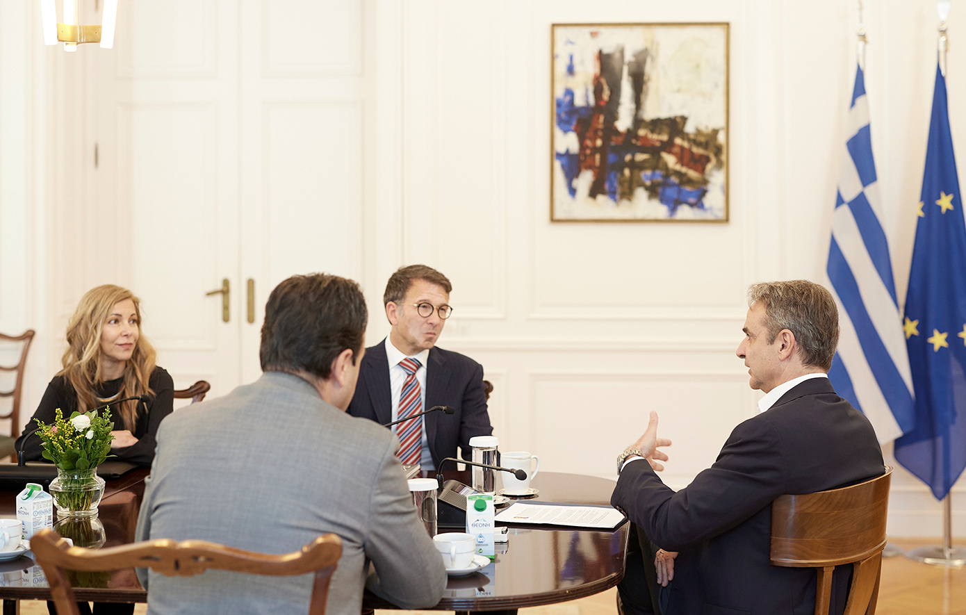 Ο πρωθυπουργός Κυριάκος Μητσοτάκης συναντήθηκε σήμερα στο Μέγαρο Μαξίμου με τον εκτελεστικό αντιπρόεδρο και Chief Commercial Officer της Microsoft, Judson Althoff, και ανώτερα στελέχη της εταιρείας.
