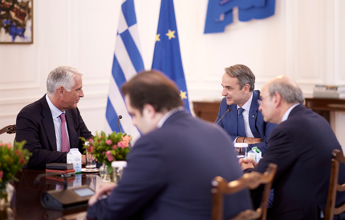 Ο Κυριάκος Μητσοτάκης συναντήθηκε με τον Διευθύνοντα Σύμβουλο του ομίλου UniCredit Andrea Orcel και τον Διευθύνοντα Σύμβουλο της Alpha Bank Βασίλη Ψάλτη, στο Μέγαρο Μαξίμου.