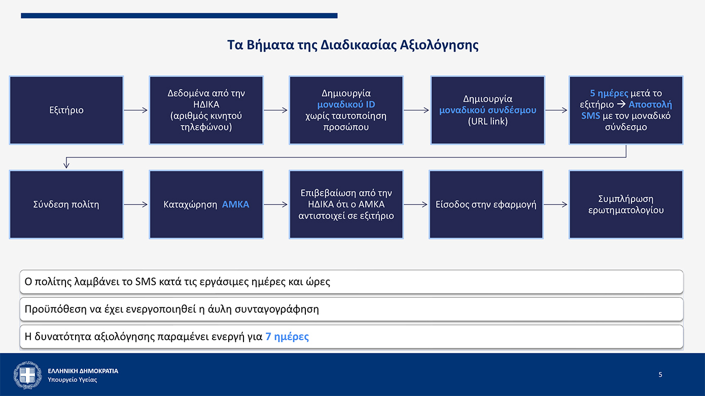 Πρόκειται για εφαρμογή μέσω της οποίας ο πολίτης, αμέσως μετά την ολοκλήρωση της νοσηλείας του, έχει τη δυνατότητα μέσω του axiologisi.esy.gov.gr, με εύχρηστο τρόπο, σε λίγα λεπτά, με πλήρη ανωνυμία και διασφάλιση των προσωπικών δεδομένων, να αξιολογήσει τις παρεχόμενες υπηρεσίες στα νοσοκομεία του ΕΣΥ, συμβάλλοντας κατ’ αυτόν τον τρόπο στην αναβάθμισή τους.