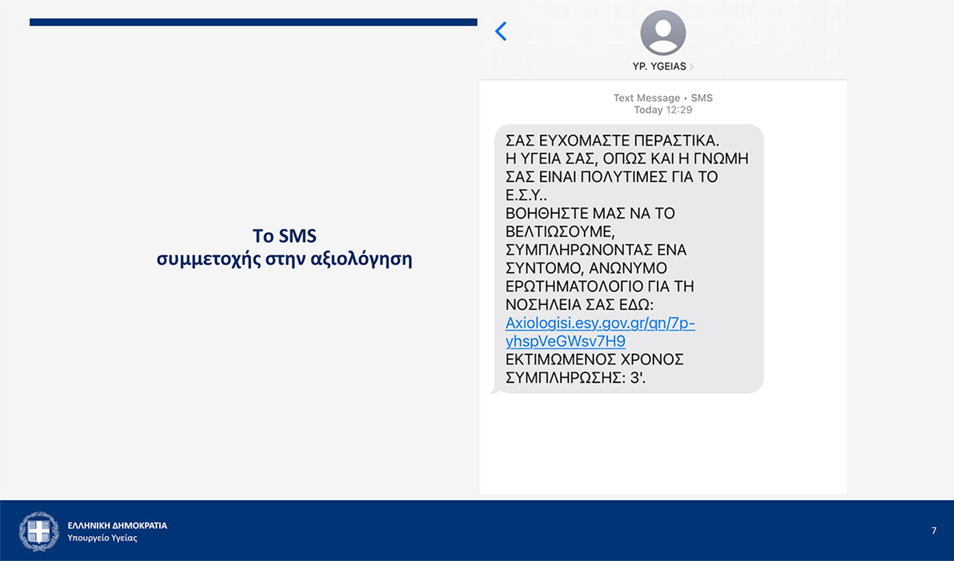 Ο σκοπός μας, όπως αναφέρεται και στο μήνυμα, είναι να μας βοηθήσουν οι ίδιοι οι ασθενείς να γίνουμε καλύτεροι. Διότι, προφανώς, εμείς δεν μπορούμε να έχουμε πλήρη εικόνα της κατάστασης σε ένα νοσοκομείο. Την εικόνα την παίρνουμε από τα επίσημα στοιχεία, αλλά και από αυτά τα οποία μας μεταφέρει συχνά η διοίκηση του νοσοκομείου. Έχει πάρα πολύ μεγάλη σημασία να ακούς και τους ίδιους τους ασθενείς: τι κάνουμε καλά, τι δεν κάνουμε καλά και πώς μπορούμε να βελτιωθούμε.