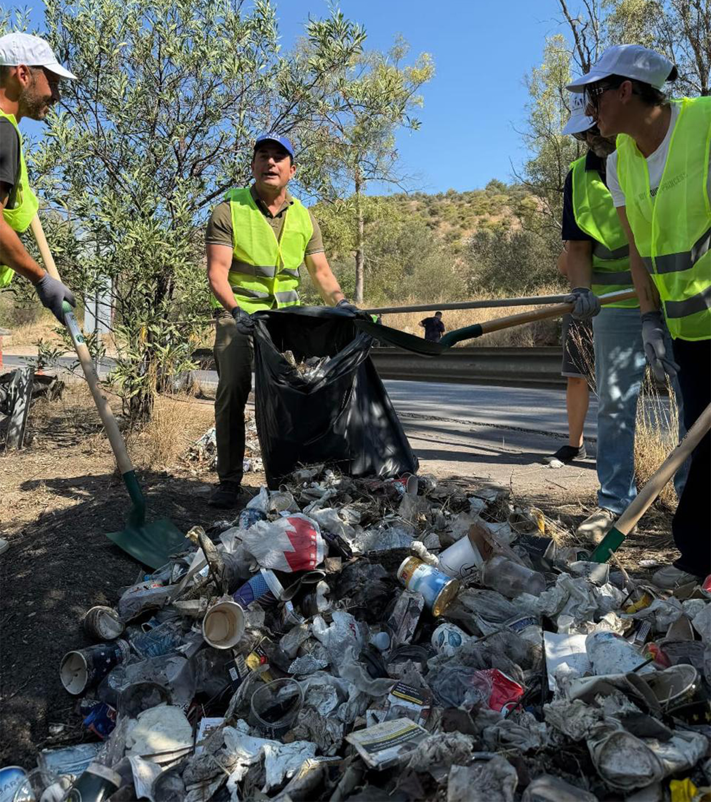 Από την πλευρά του, ο Κώστας Σκρέκας δήλωσε: «Πριν μερικές ημέρες είδαμε εικόνες ντροπής. Είδαμε να σχηματίζονται λόφοι από σκουπίδια, πλαστικά μπουκάλια, ποτήρια και άλλα αντικείμενα, τα οποία πετούν διερχόμενοι από το σημείο οδηγοί. Μία εικόνα που δεν τιμά την Ελλάδα. Αποφασίσαμε, λοιπόν, αυτό να το αλλάξουμε. Ήρθαμε εδώ εθελοντές από τη Νέα Δημοκρατία και από την ΟΝΝΕΔ και ήδη η εικόνα αλλάζει. Ένα σημείο γεμάτο από σκουπίδια καθαρίζεται και στη συνέχεια αυτά θα μεταφερθούν σε ένα κέντρο διαχείρισης αστικών απορριμμάτων, έτσι ώστε να πάνε για ανακύκλωση».