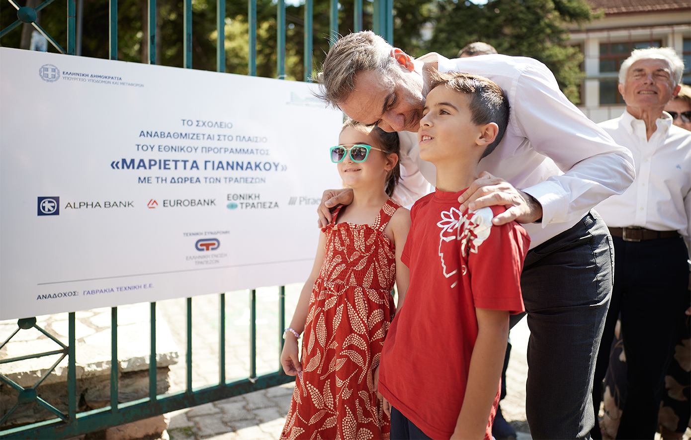 Οπότε καλή δουλειά να ευχηθώ και με το καλό τα παιδιά μας, σε 430 σχολεία τον Σεπτέμβριο, θα τα βρουν πλήρως ανακαινισμένα, πολύ πιο ποιοτικά και πολύ πιο προσβάσιμα και πιο ασφαλή».