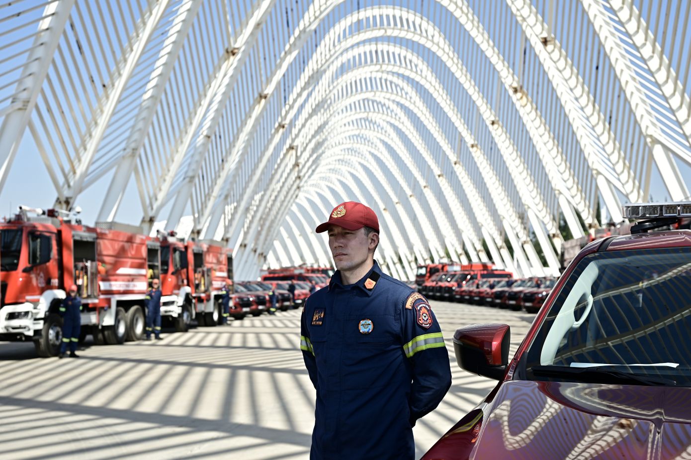 Τα 164 οχήματα συνολικής αξίας 15.550.000 ευρώ που περιλαμβάνουν υδροφόρα παντός εδάφους, εξοπλισμένα με δεξαμενές χωρητικότητας 12.000 λίτρων, καθώς και οχήματα μεταφοράς προσωπικού και εξοπλισμού, παρουσιάστηκαν σε ειδική τελετή στο ΟΑΚΑ, παρουσία του πρωθυπουργού, Κυριάκου Μητσοτάκη.