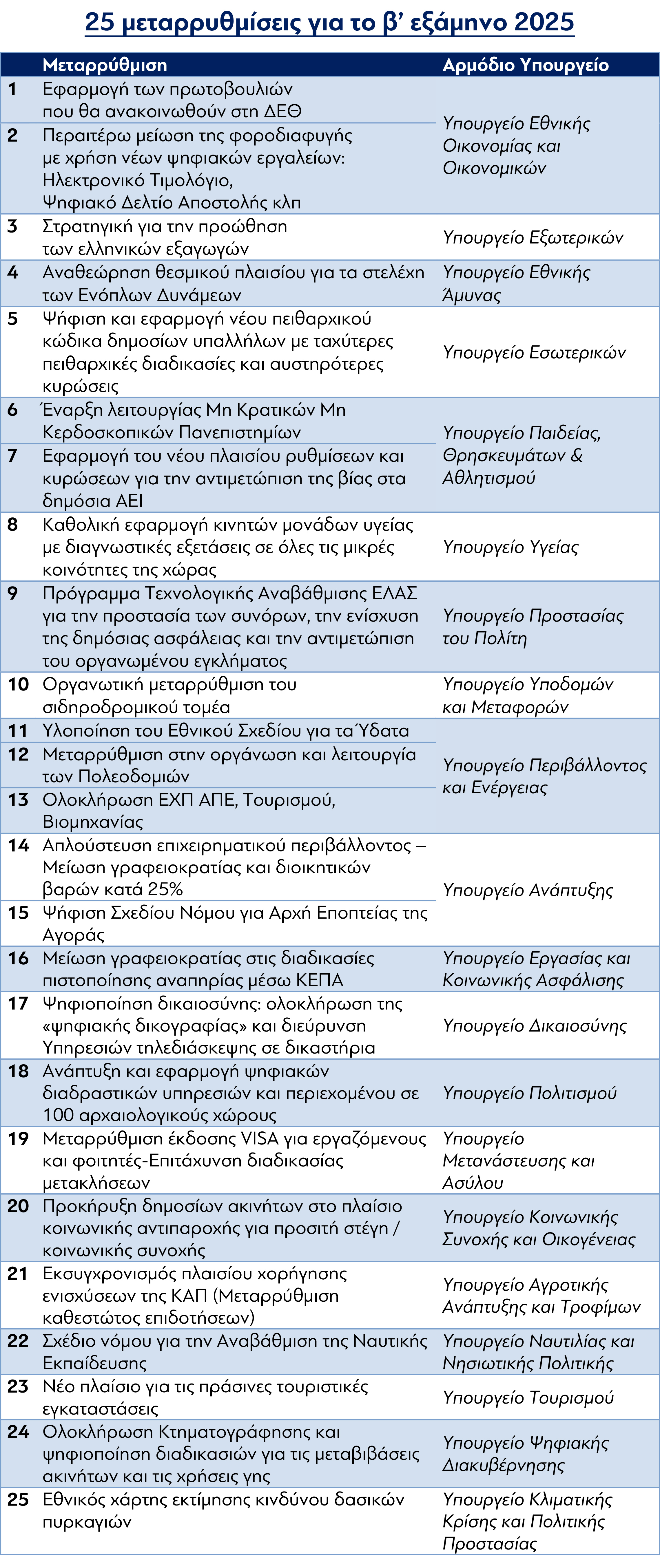 Οι 25 μεταρρυθμίσεις της κυβέρνησης