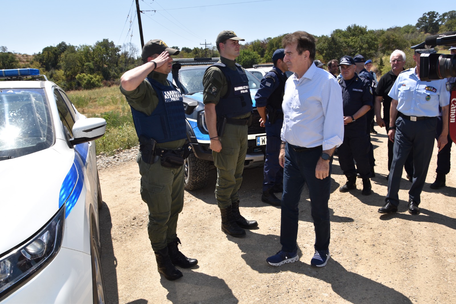 «Θα συνεχίσουμε την κατασκευή του Φράχτη με επιπλέον 5 χιλιόμετρα εδώ, σε αυτή την περιοχή που βρισκόμαστε σήμερα, έτσι ώστε να συμπληρώσουμε μια σειρά από κρίσιμα και ευάλωτα σημεία που έχουν επιλέξει οι αρμόδιοι των Ενόπλων Δυνάμεων και της Ελληνικής Αστυνομίας», τόνισε ο υπουργός Προστασίας του Πολίτη.