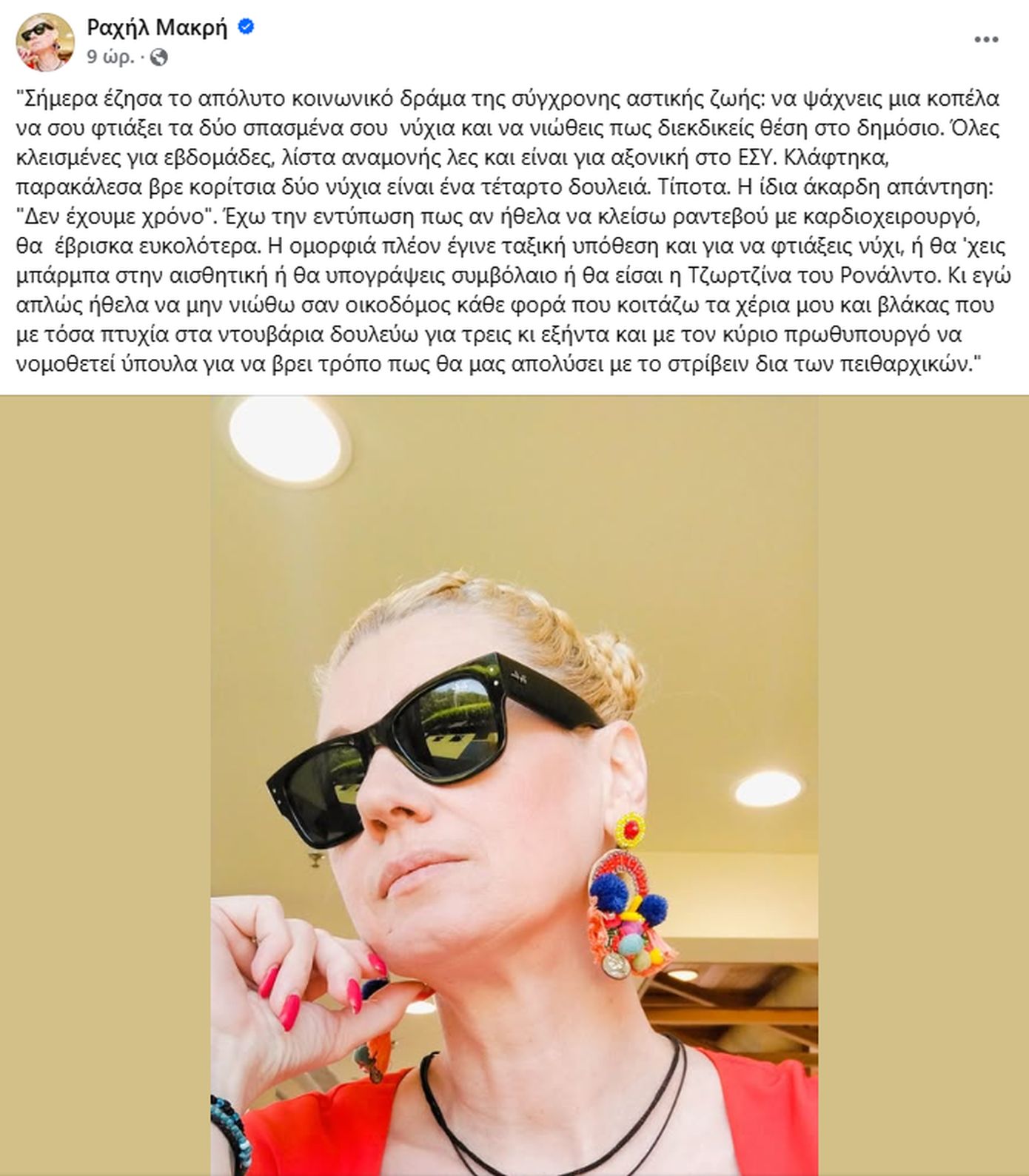 Η ανάρτηση της Ραχήλ Μακρή έχει ως εξής: