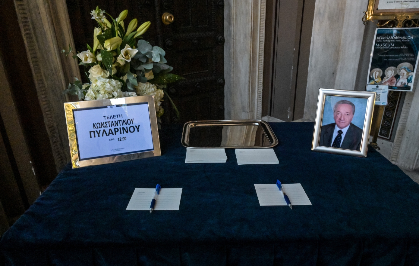 Σε κλίμα συγκίνησης, ο πολιτικός κόσμος της χώρας αποχαιρετά τον πρώην βουλευτή, Κωνσταντίνο Πυλαρινό. Η εξόδιος ακολουθία ψάλλεται αυτή την ώρα στον Μητροπολιτικό Ναό Αθηνών, όπου έχουν συγκεντρωθεί συγγενείς, φίλοι και συνεργάτες του εκλιπόντος.
