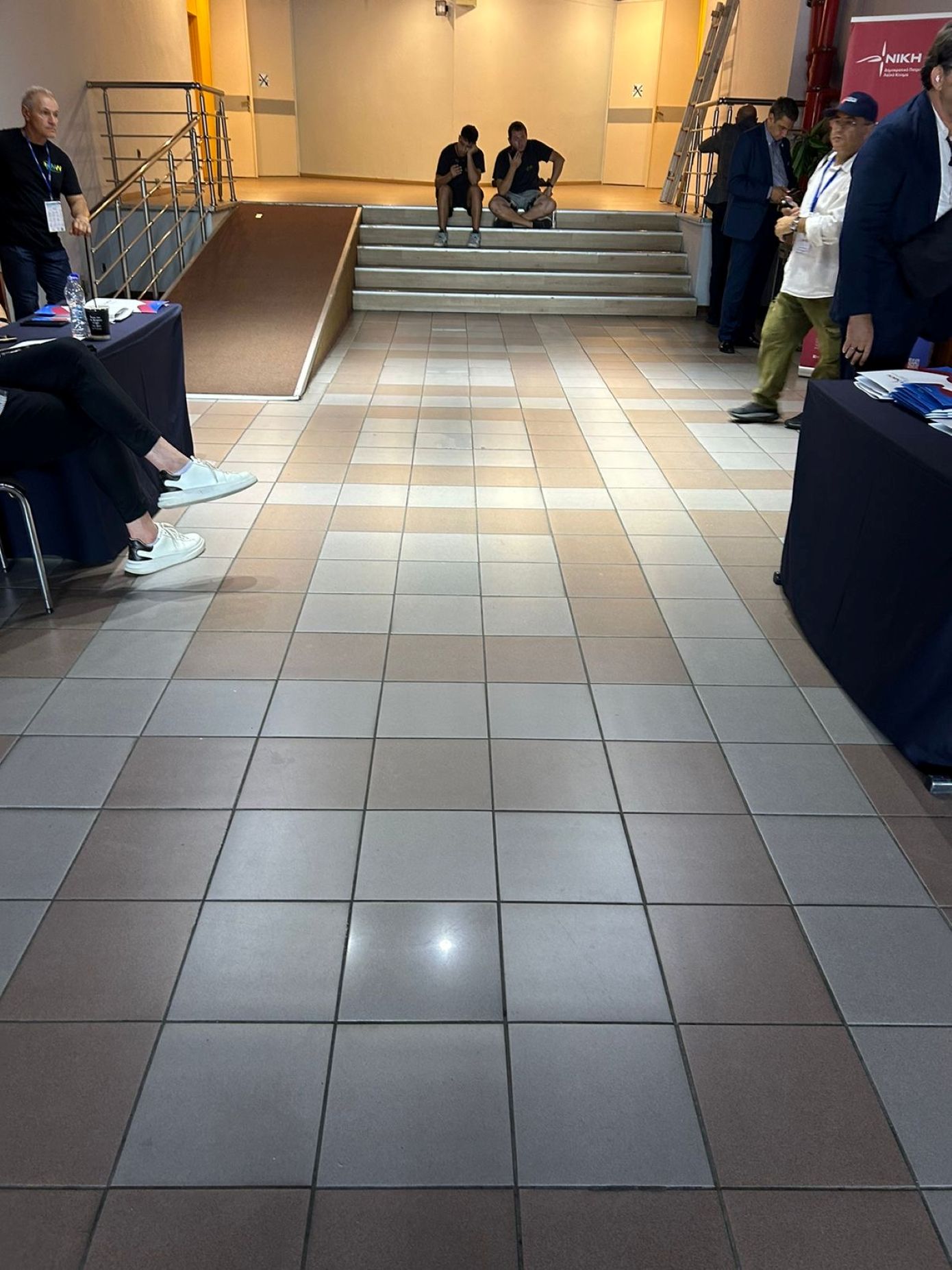 Στο χώρο, δεξιά, όπως είναι φυσικό, βρίσκεται το «στέκι» της Νίκης και αριστερά αυτό της Νέας Αριστεράς. Αυτήν την ώρα είναι σε εξέλιξη οι δηλώσεις του προέδρου της Νίκης, Δημήτρη Νατσιού, ενώ σε λίγη ώρα ξεκινά και η συνέντευξη του Αλέξη Χαρίτση.