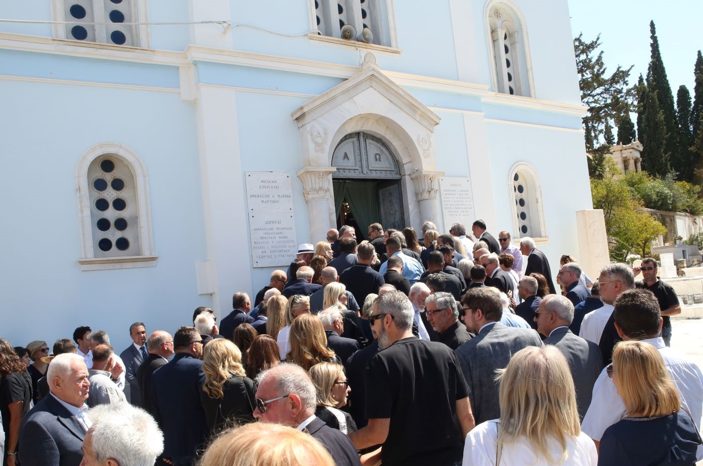 Μεταξύ άλλων, παρευρίσκονται ο πρόεδρος της Βουλής Νικήτας Κακλαμάνης, ο υπουργός Εθνικής Άμυνας Νίκος Δένδιας, η Άντζελα Γκερέκου, καθώς και πλήθος κόσμου που ήρθε για να μοιραστεί τη θλίψη με την οικογένεια.