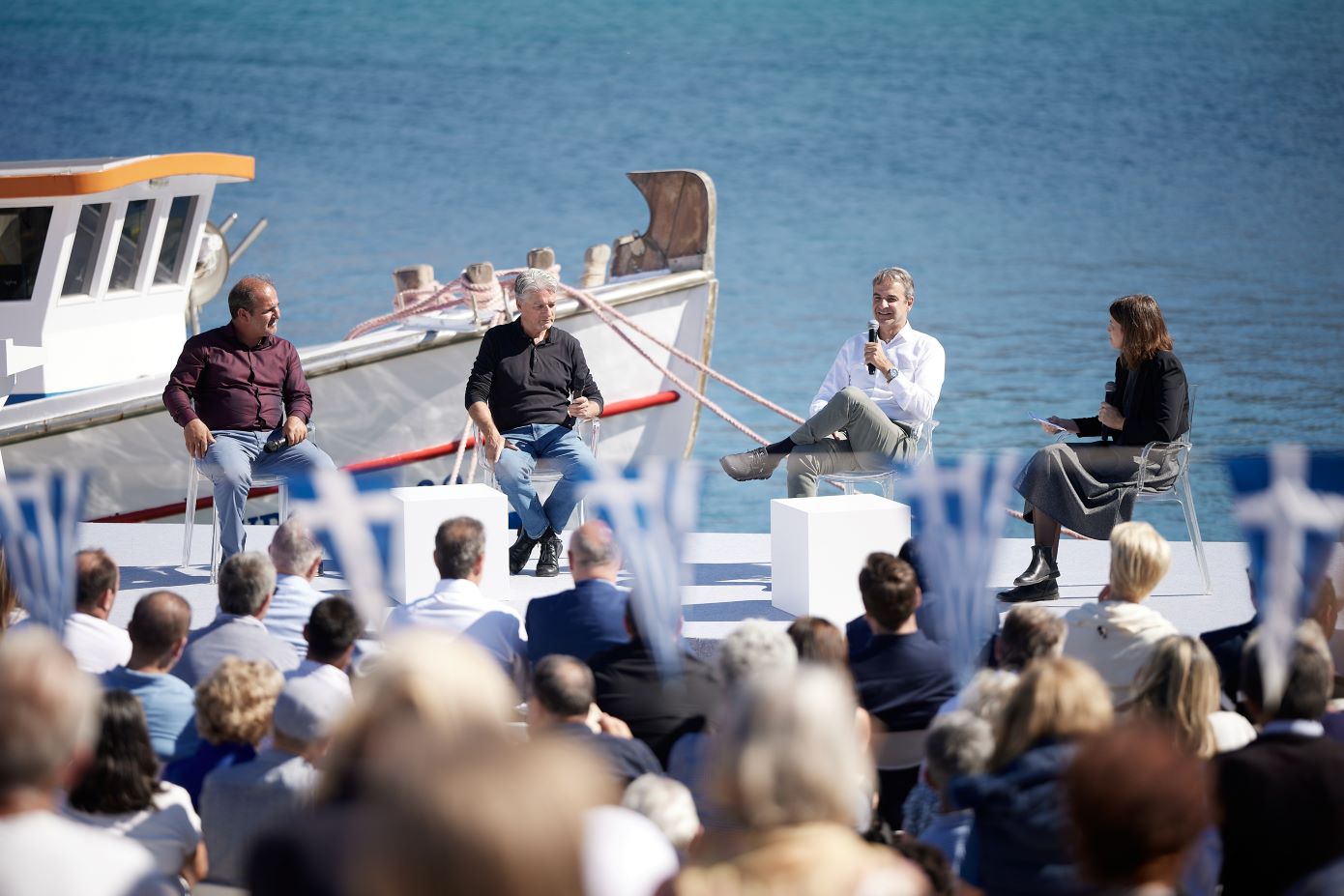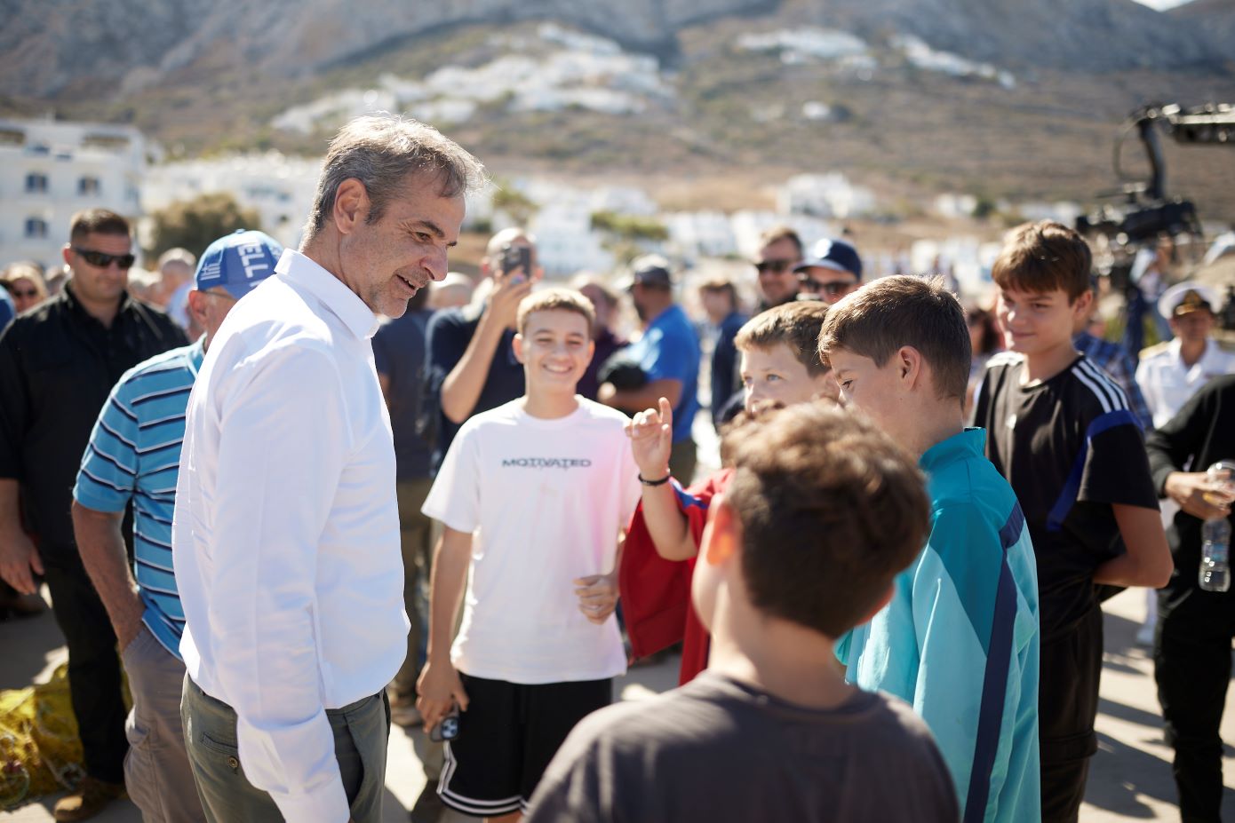 Ο πρωθυπουργός Κυριάκος Μητσοτάκης, στο πλαίσιο εκδήλωσης για την παρουσίαση της πρωτοβουλίας «Αμοργόραμα», έλαβε μέρος σε συζήτηση με τον πρόεδρο του Συλλόγου Αλιέων Αμοργού Μιχάλη Κρόσμαν και τον Γραμματέα του Συλλόγου, Γιάννη Ψακή. Τη συζήτηση συντόνισε η Άντζελα Λάζου Dean, Projects Manager για την Ελλάδα στο Blue Marine Foundation.