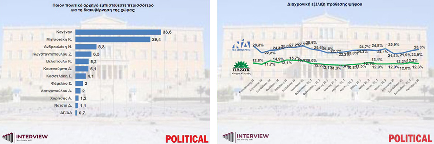 Πρώτος στην εμπιστοσύνη ο Μητσοτάκης