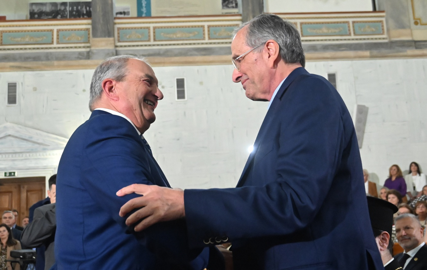 Μάλιστα, μετά το πέρας της εκδήλωσης, οι δύο πρώην πρωθυπουργοί αντάλλαξαν έναν θερμό εναγκαλισμό, όπως κατέγραψε ο φωτογραφικός φακός.