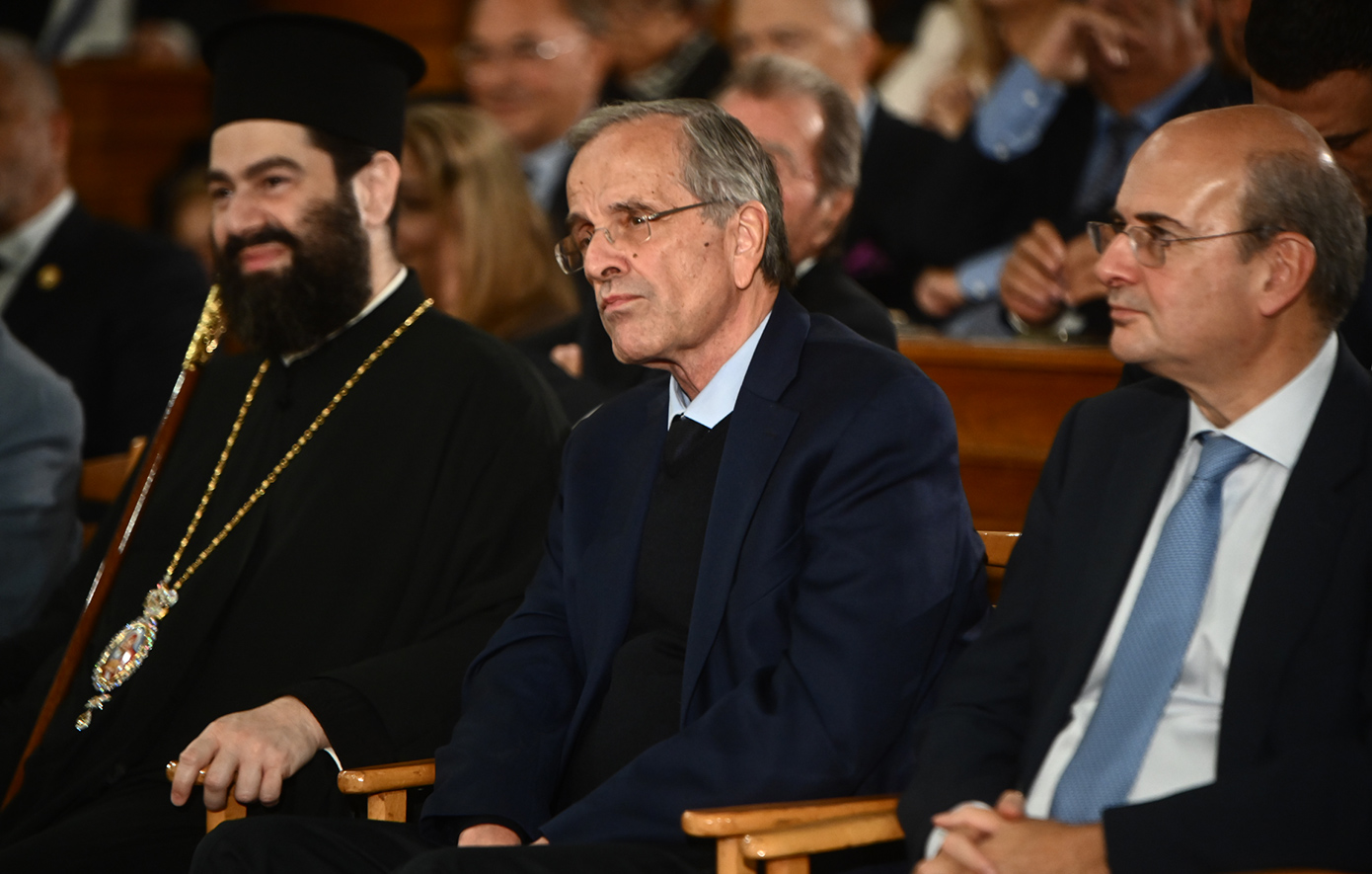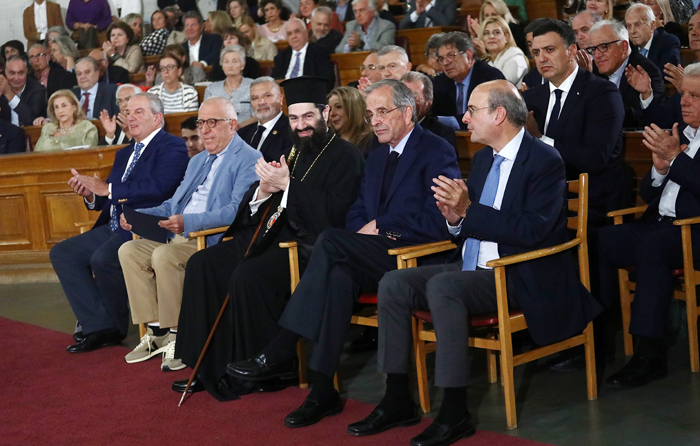 Στην εκδήλωση βρέθηκε και ο Αντώνης Σαμαράς, ο οποίος αντάλλαξε μια θερμή χειραψία με τον Κώστα Καραμανλή.