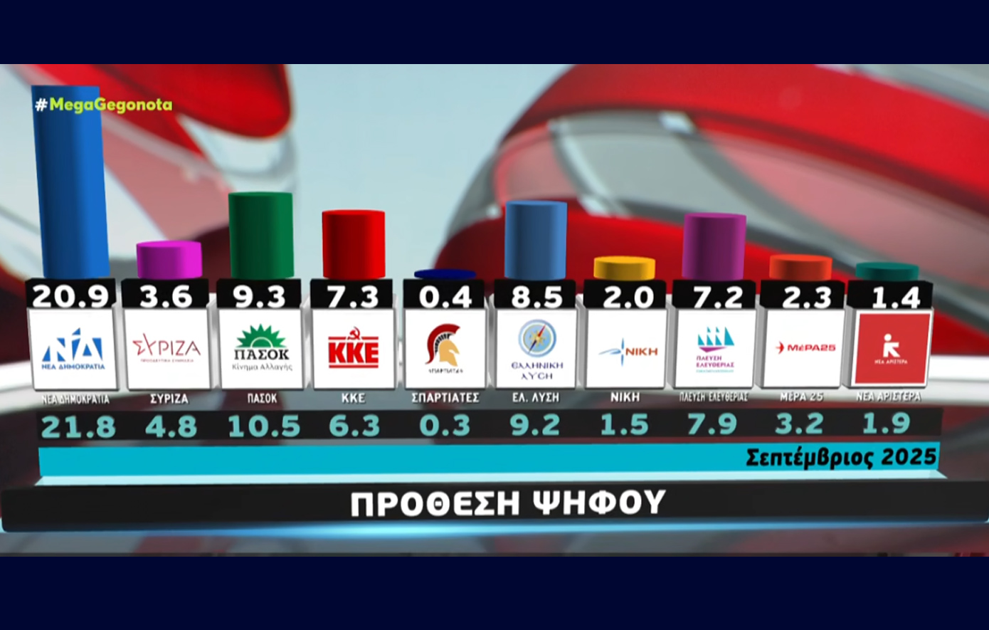 Η Metron Analysis πραγματοποίησε δημοσκόπηση για το Mega και τα αποτελέσματα προκαλούν έκπληξη και μπορεί αναταράξεις στη πολιτική ζωή αν επιβεβαιωθούν.