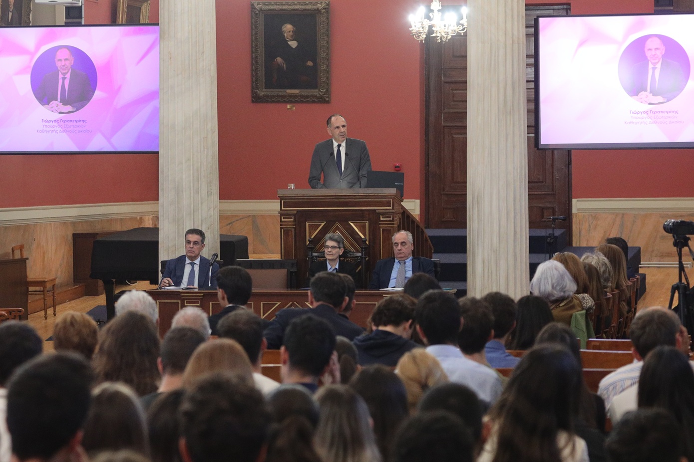 «Δεν μπορείς να χαρακτηρίσεις Δίκαιο κάτι, το οποίο απορρέει από την πυγμή του ισχυρού», υπογράμμισε ο υπουργός Εξωτερικών Γιώργος Γεραπετρίτης, μιλώντας το βράδυ της Πέμπτης σε εκδήλωση του ΕΚΠΑ με θέμα «Η Ελλάδα απέναντι στις Σύγχρονες Διεθνείς Προκλήσεις».