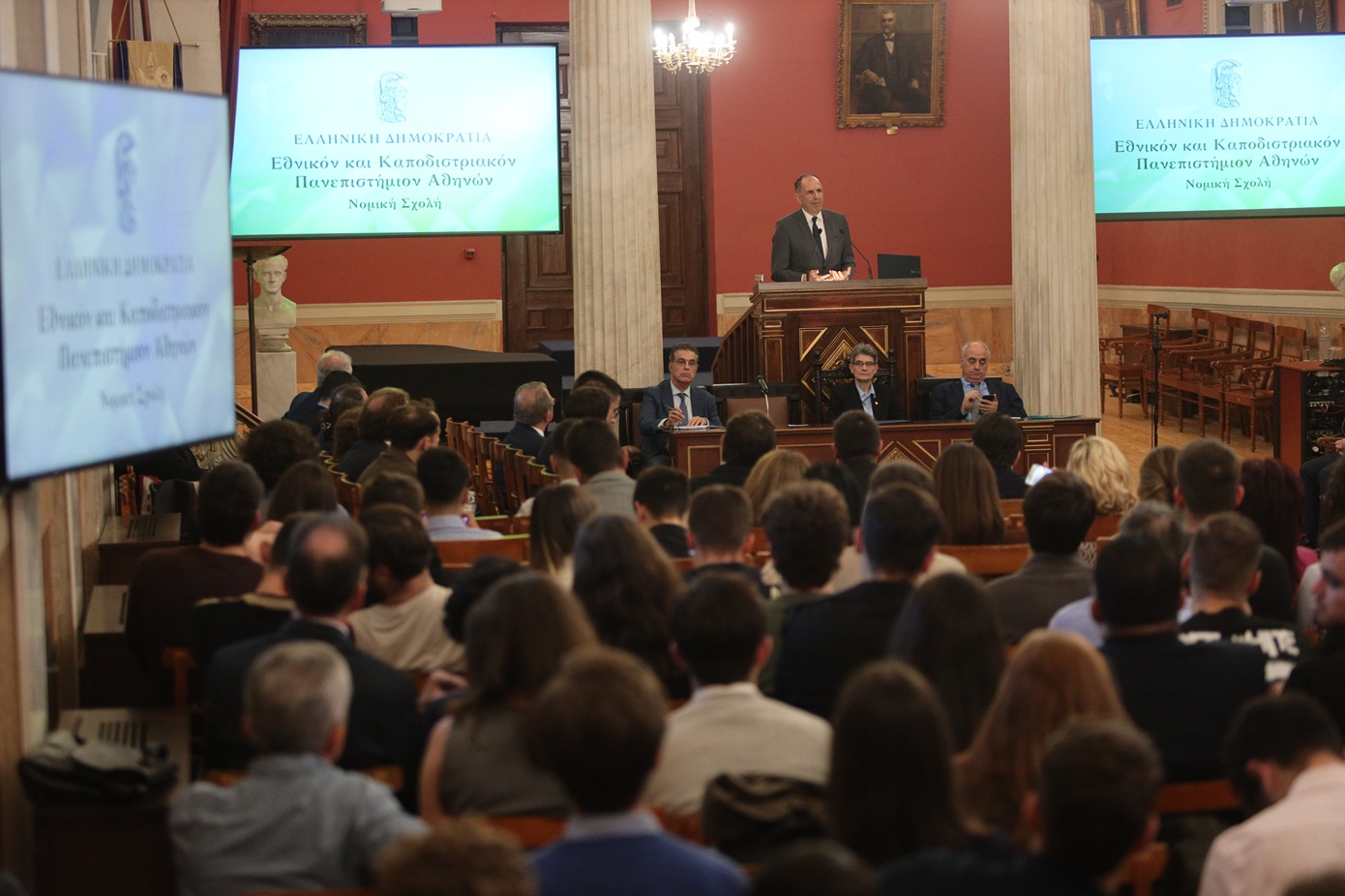 Χαρακτήρισε ως «πραγματικά ισχυρό όπλο» το διεθνές δίκαιο για κράτη που βρίσκονται «σε δύσκολη γειτονιά» και είπε ότι παρά το γεγονός ότι αυτήν τη στιγμή υπάρχει μια μεγαλύτερη από ποτέ επίκληση του Διεθνούς Δικαίου, η διεθνής πολιτική φαίνεται να ρέπει προς μια πολύ πιο συναλλακτική προσέγγιση. «Για να το πω με όρους νομικούς, μια και απευθύνομαι σε ένα ειδικό ακροατήριο, εκείνο, το οποίο θα περίμενε κανείς ακούγοντας το Διεθνές Δίκαιο ως μοχλό για την ειρηνική επίλυση των διαφορών – όπως εξάλλου απαιτεί και ο Καταστατικός Χάρτης του Οργανισμού Ηνωμένων Εθνών, να έχουμε δηλαδή τον κανόνα και επί τη βάσει του κανόνα να προσπαθούμε να επιλύσουμε τα πραγματικά – εκείνο, το οποίο συμβαίνει είναι ότι έχουμε τη λύση και αναζητούμε μόνο το νομικό θεμέλιο. Το οποίο θα ενδύσει στην πραγματικότητα μια προειλημμένη απόφαση, η οποία είναι και η ωφέλιμη. Μια αμιγώς ωφελιμιστική προσέγγιση, στην οποία το Διεθνές Δίκαιο όχι μόνο υποχωρεί – αυτή θα ήταν η σχετικώς καλύτερη προσέγγιση – αλλά ακόμη-ακόμη αποτελεί και ένα νομιμοποιημένο άλλοθι για να λαμβάνονται αποφάσεις, οι οποίες πλήττουν την πειθώ του Δικαίου. Κυρίως, όμως πλήττουν τους αδύναμους» είπε ο κ.Γεραπετρίτης.
