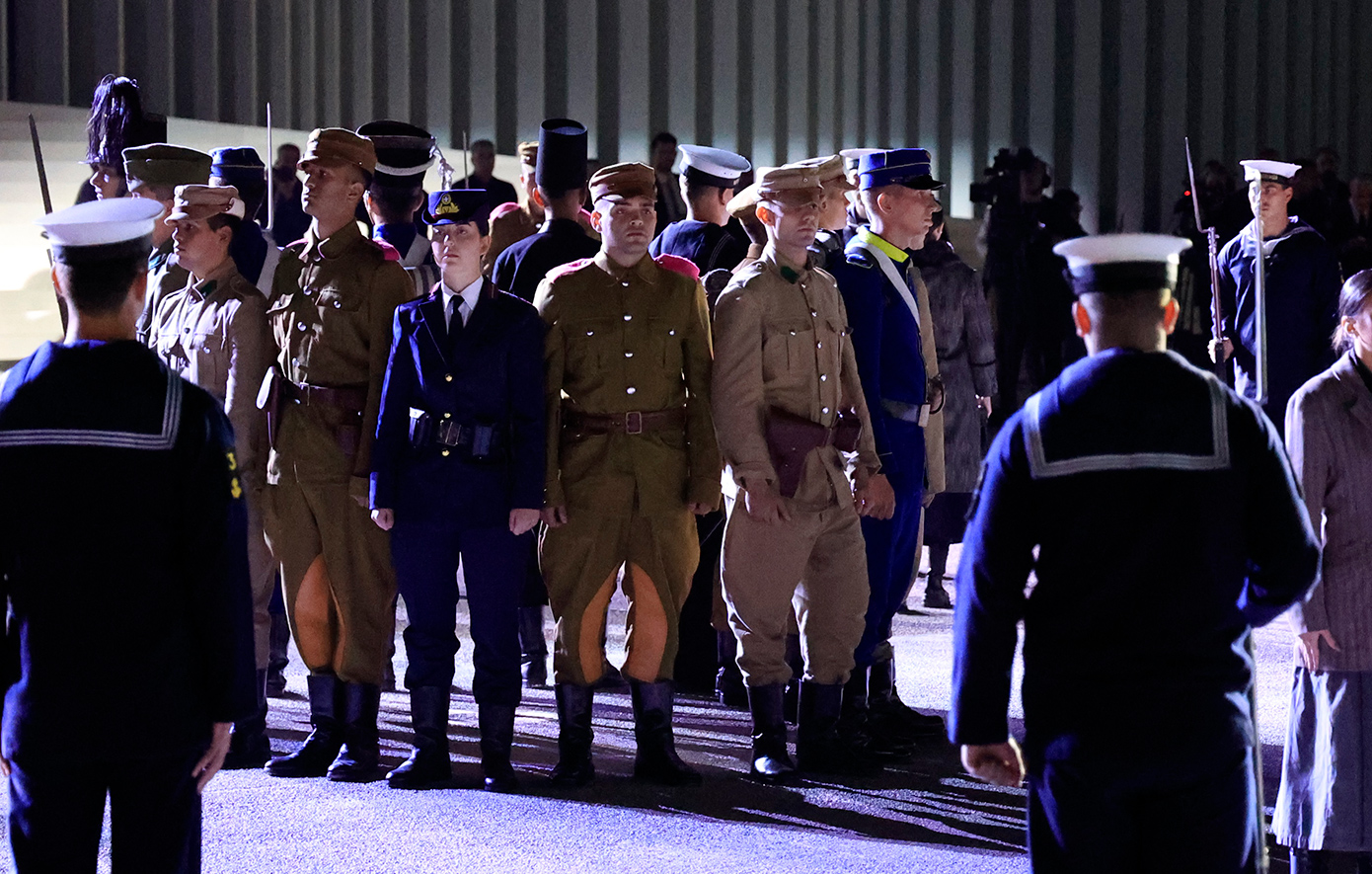 Η τελετή των αποκαλυπτηρίων πραγματοποιήθηκε παρουσία του Προέδρου της Δημοκρατίας Κωνσταντίνου Τασούλα, του υπουργού Εθνικής Άμυνας Νίκου Δένδια και του πρωθυπουργού Κυριάκου Μητσοτάκη, ο οποίος εμφανίζεται με μάσκα, καθώς νόσησε με κορονοϊό.