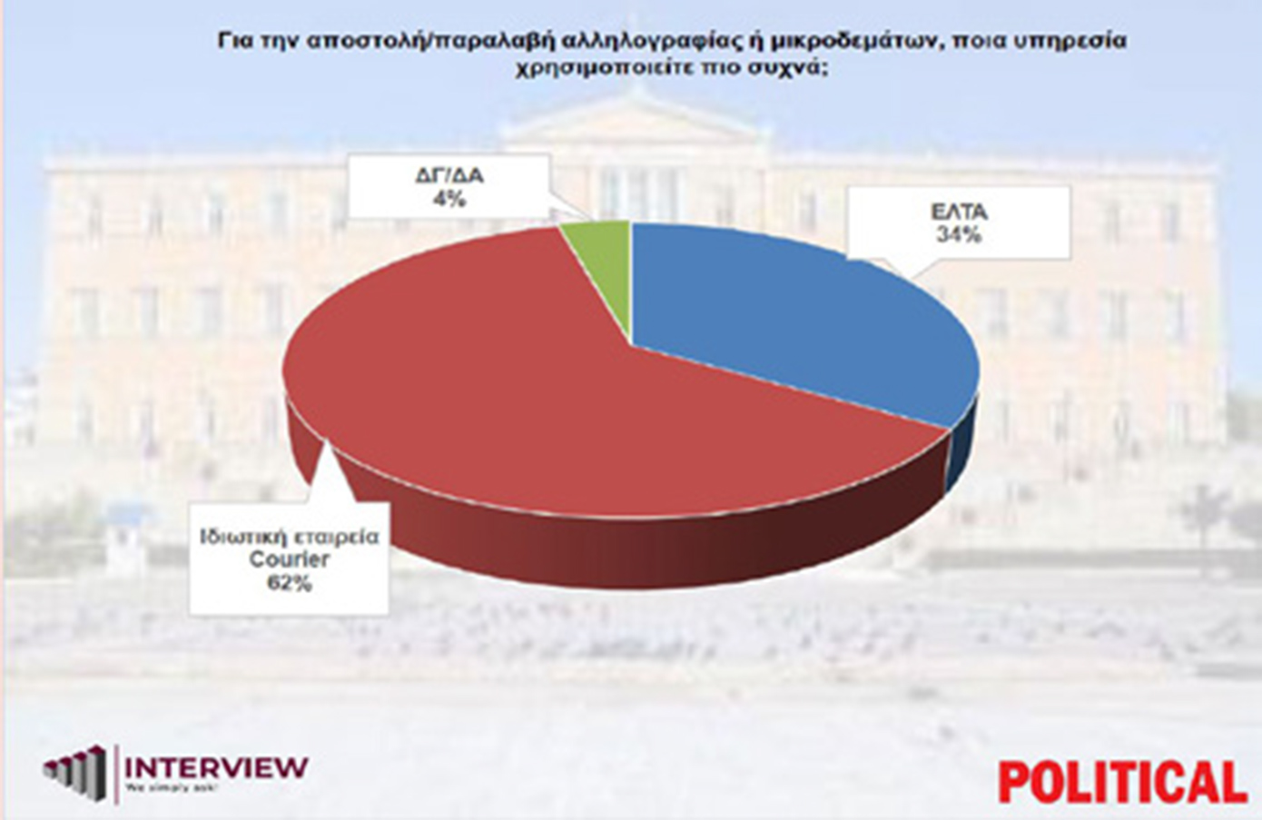 Ενδιαφέρον παρουσιάζει και η στάση των πολιτών απέναντι στα ΕΛΤΑ, καθώς η πλειονότητα στρέφεται πλέον στις ιδιωτικές courier για τις καθημερινές τους αποστολές.