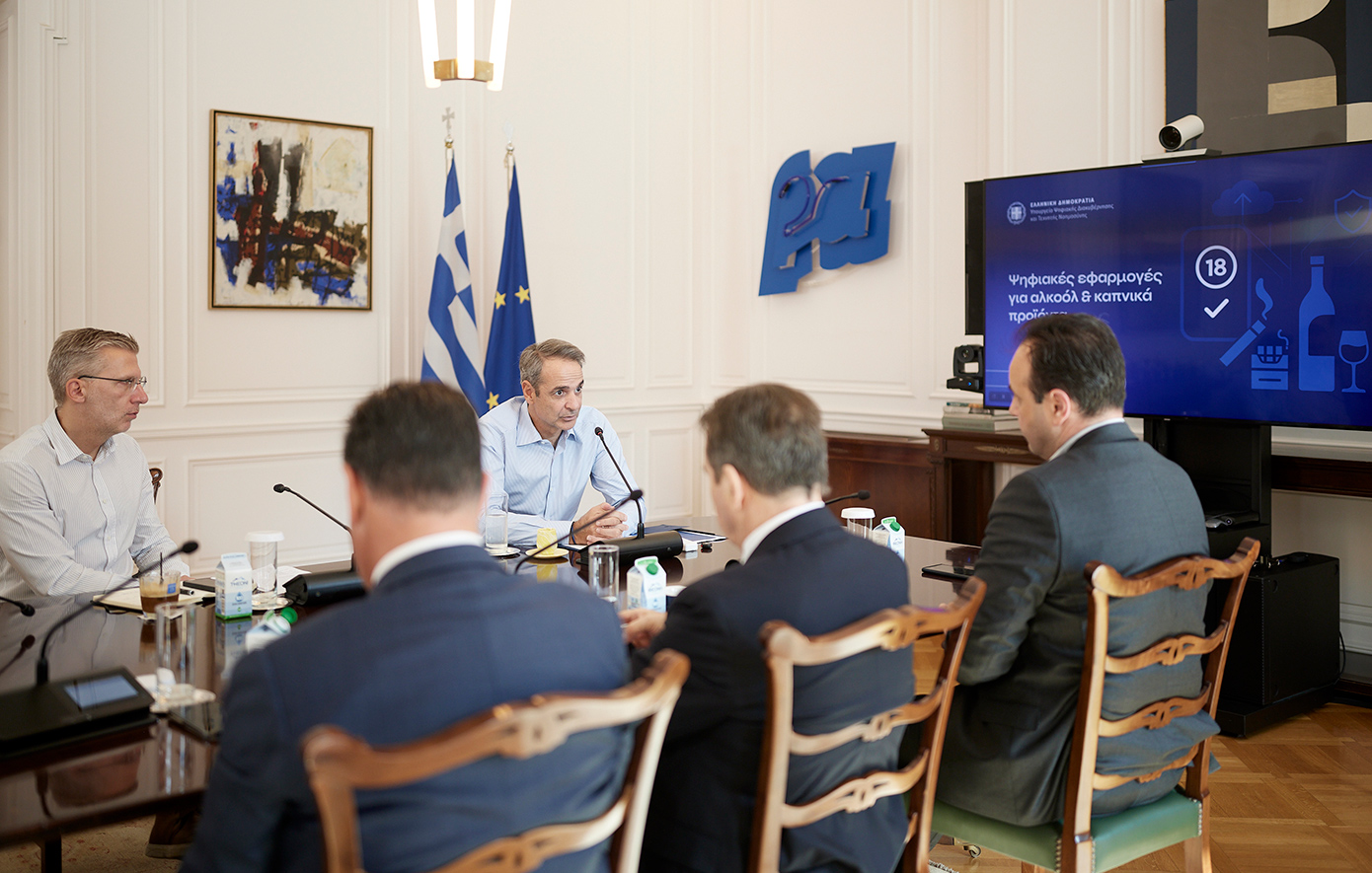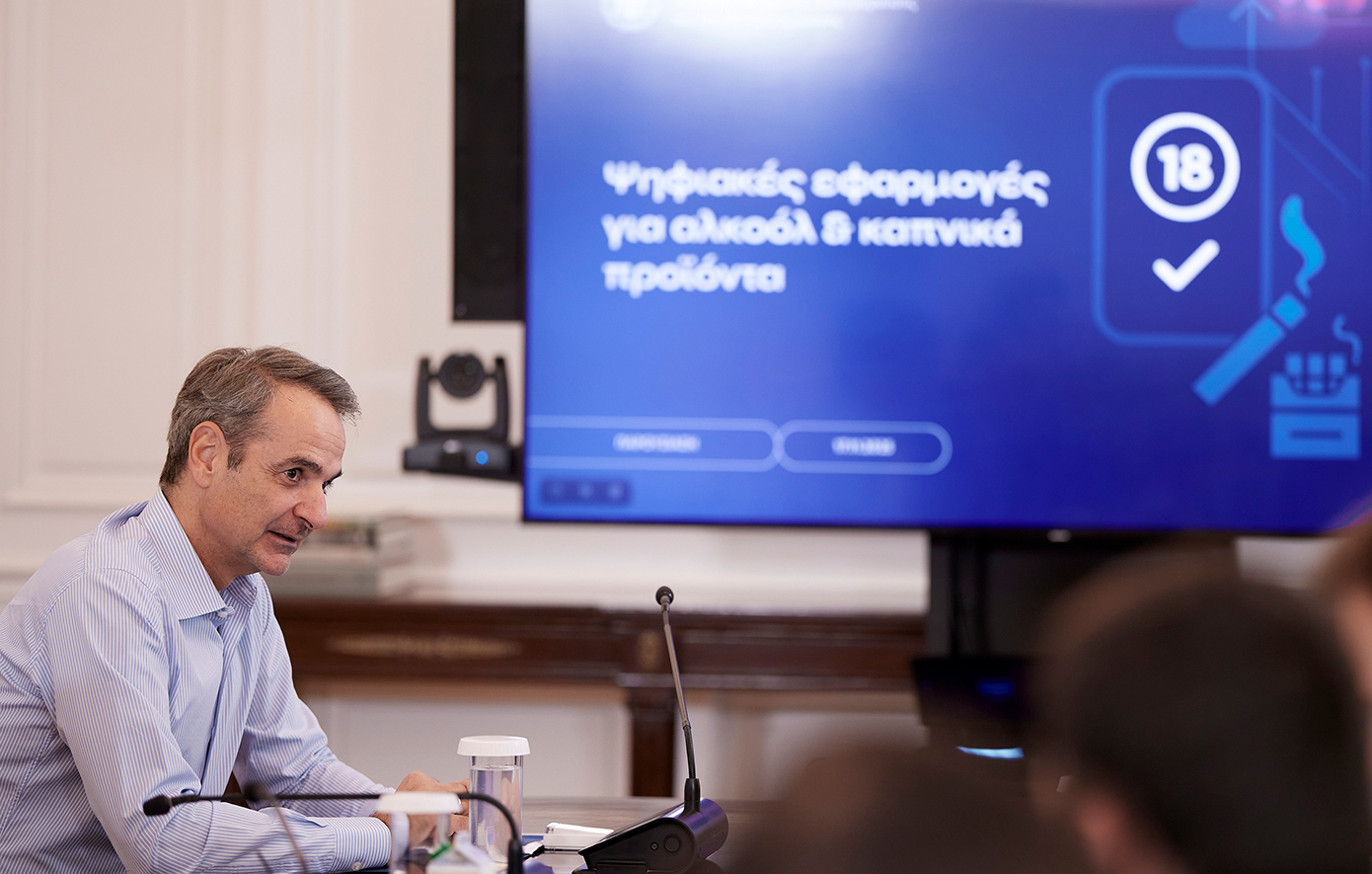 Τρία νέα ψηφιακά εργαλεία που θα αυξήσουν την αποτελεσματικότητα των ελέγχων για την απαγόρευση πώλησης αλκοολούχων ποτών και καπνικών προϊόντων σε ανήλικους παρουσιάστηκαν τη Δευτέρα 17 Νοεμβρίου, κατά τη διάρκεια σύσκεψης υπό τον πρωθυπουργό Κυριάκο Μητσοτάκη, στο Μέγαρο Μαξίμου.