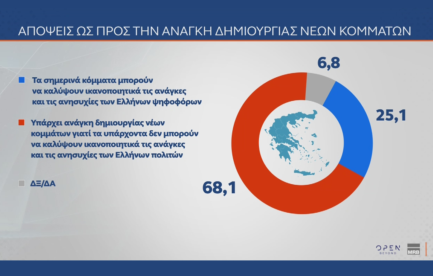 Οι πολίτες μεταξύ άλλων ρωτήθηκαν για το αν τα κόμματα που υπάρχουν μπορούν να καλύψουν τις ανάγκες της κοινωνίας.
