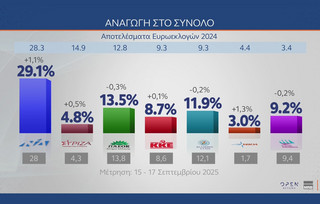 Το προβάδισμα της ΝΔ παραμένει και στην πρόθεση ψήφου, με τα ποσοστά να διαμορφώνονται ως εξής: